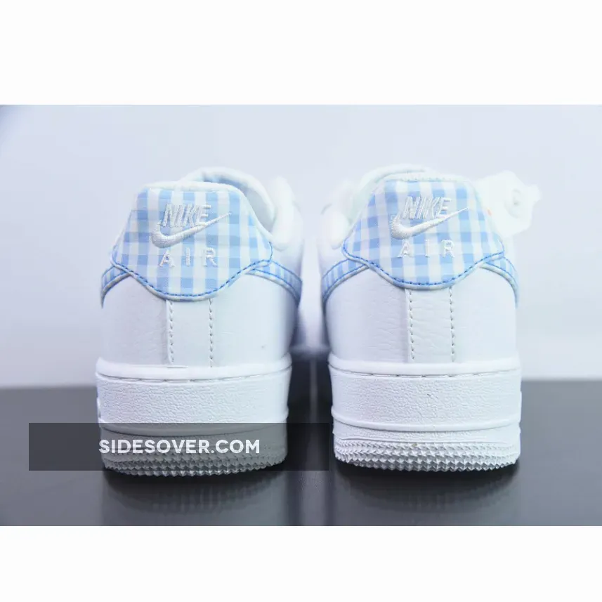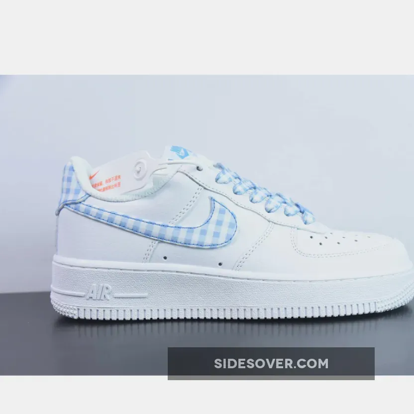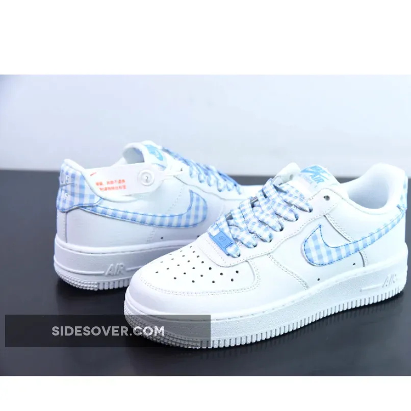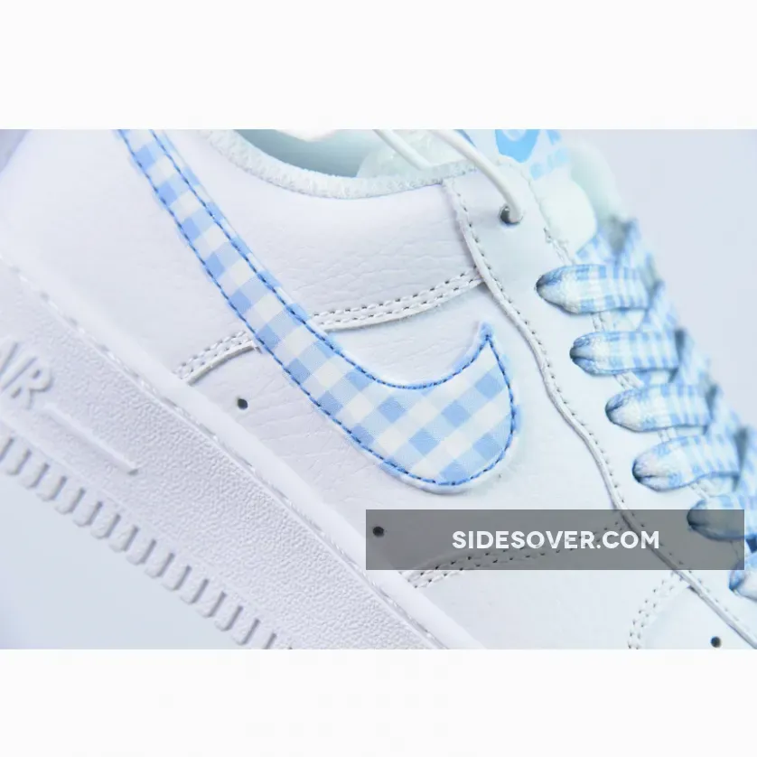 The sneaker dons a all-White upper consisting of a leather base and mesh tongues and lining. The sneaker is highlighted by the White and Blue gingham print used on the Swooshes and heel overlays. Continuing this white color palette are the laces, tongue, and sockliner. Underfoot, a chunk white AF1 midsole with Air branding on the heel gets paired with a matching rubber outsole.
