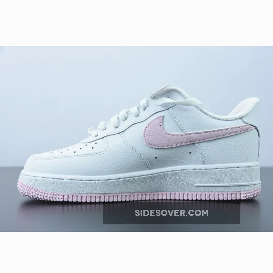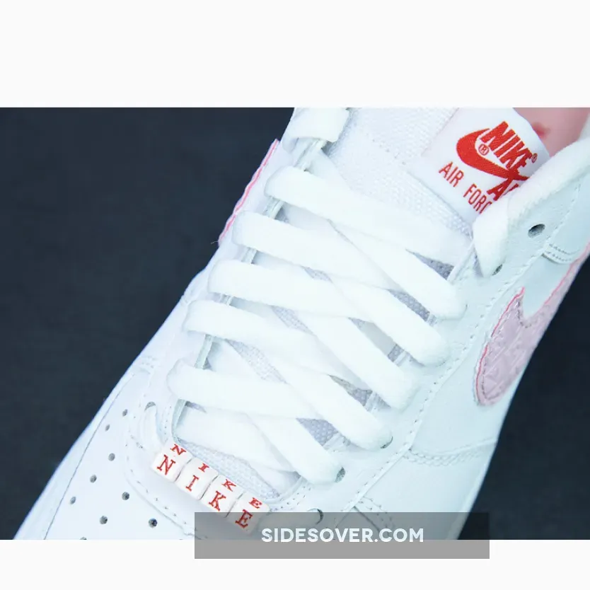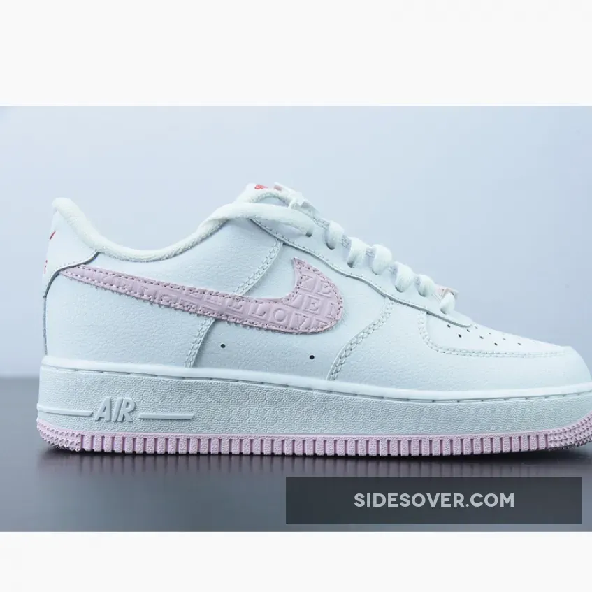 Another Nike Air Force 1 joins the brand’s Valentine collection with the Nike Air Force 1 Low Valentine White. The entire AF1 is dressed in white tumbled leather from heel to toe, making the signature profile Swooshes on both the medial and lateral sides of the shoe stand out in baby pink. Not only that, the words “NIKE” and “LOVE” are raised across the baby pink surface. The same words are repeated on the square charms across the vamp of the shoe, “LOVE” is spelled out in red letters on the left shoe while “NIKE” is spelled out on the right. Nike Air branding in red stands out on both the white tongue tab and the white heel tab.