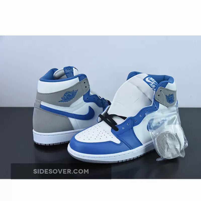 The Air Jordan 1 Retro High OG ‘True Blue’ dresses the timeless silhouette in familiar hues borrowed from an OG colorway of the Air Jordan 3. The smooth leather upper combines a crisp white base with contrasting hits of True Blue on the forefoot overlay, Swoosh, and eyestay. A neutral Cement Grey finish is applied to the heel and collar overlay, featuring a retro Wings logo stamped in blue. A woven Nike Air tongue tag completes the OG-inspired aesthetic. Lightweight cushioning is provided by an encapsulated Air-sole unit nestled in the heel of the rubber cupsole.