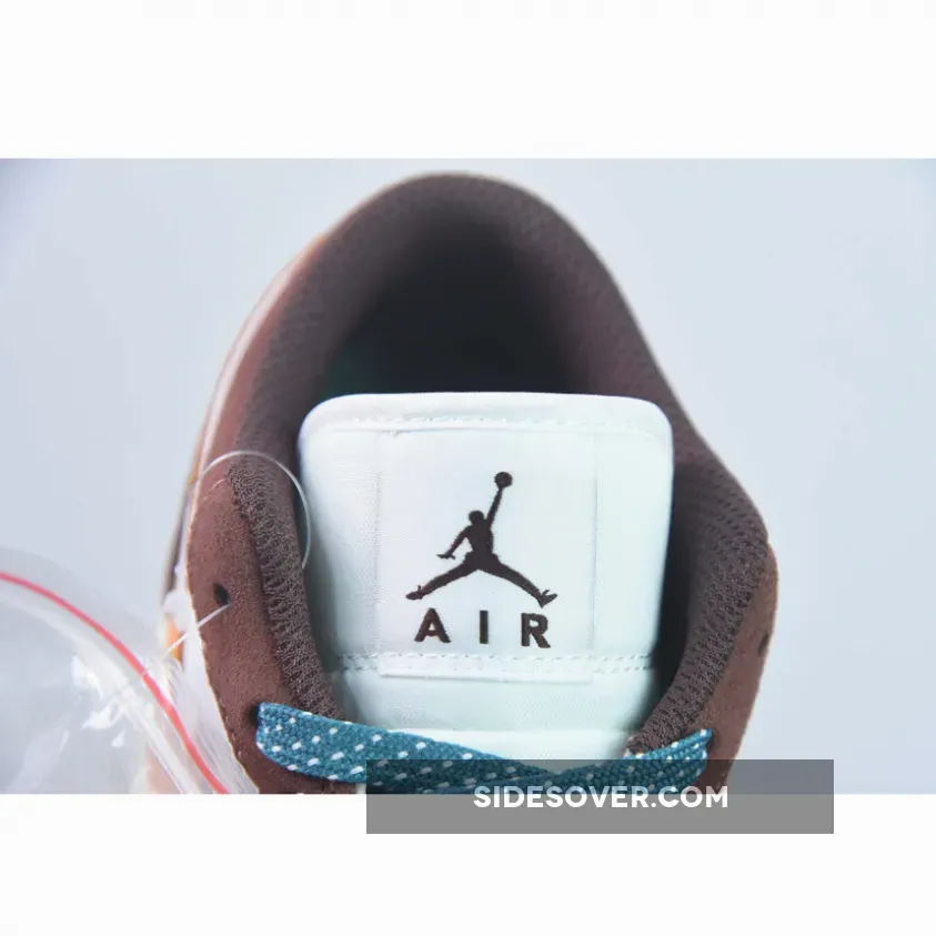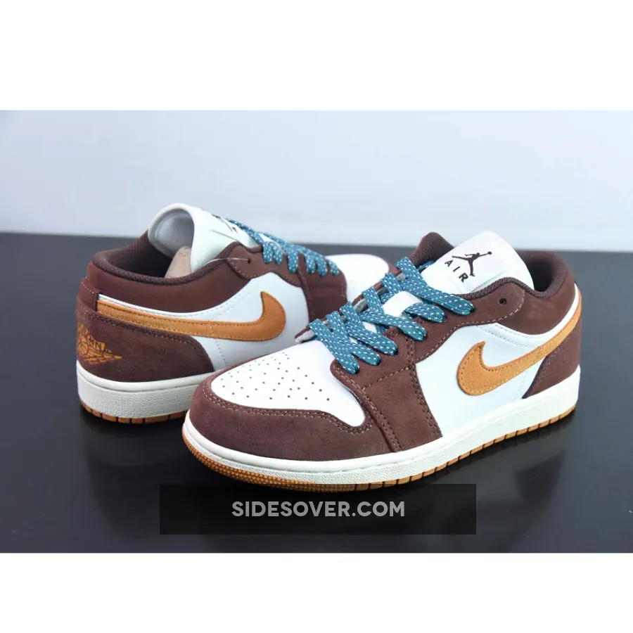 This offering of the Air Jordan 1 Low comes constricted in a mix of leather, hairy suede, and mesh materials. The hairy suede signature profile Swooshes on both the medial and lateral mid-panels are a lighter tan shade. Geode teal joins the mix via the laces, bringing a splash of colour to the neutral backdrop.