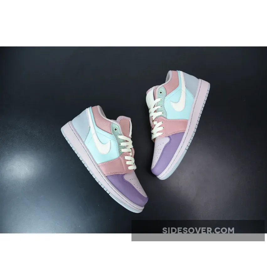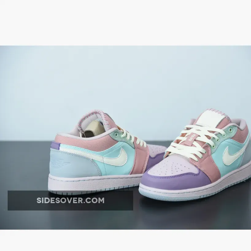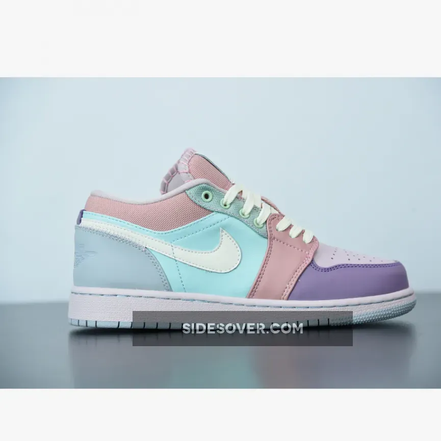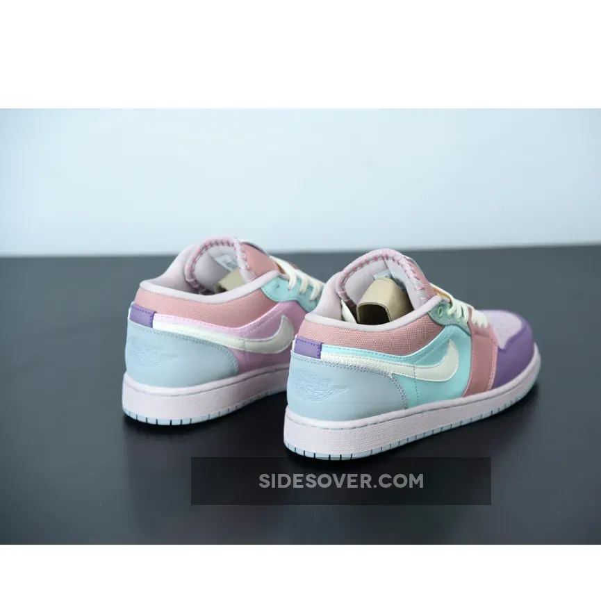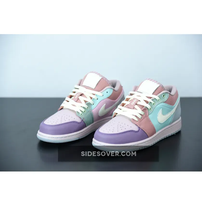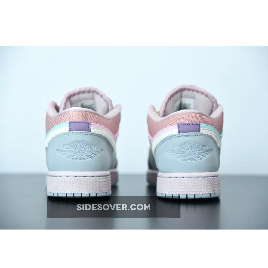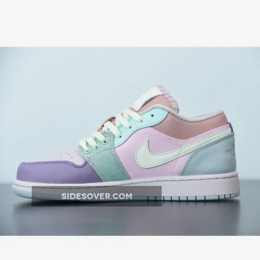 This offering of the Air Jordan 1 Low comes constructed in a mix of materials featuring a canvas and leather build fully dressed in various pastel hues. Other details include exposed stitching on the lateral rear and tongue while having Sail laces and Swooshes completed with a Grey rubber outsole.