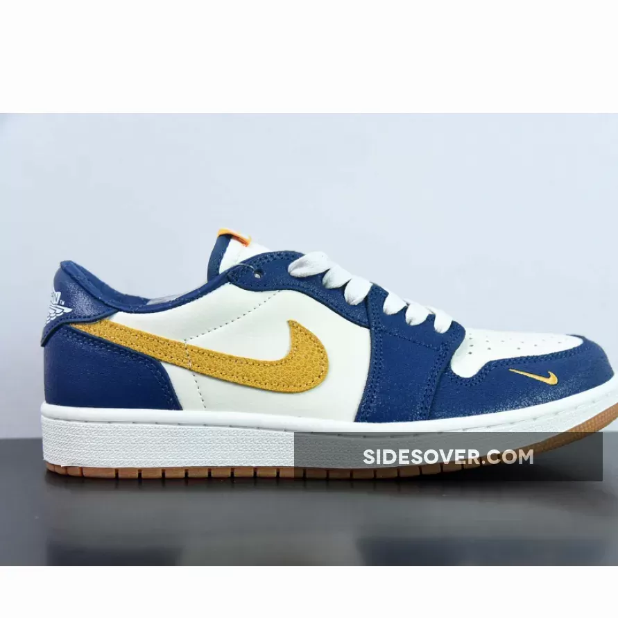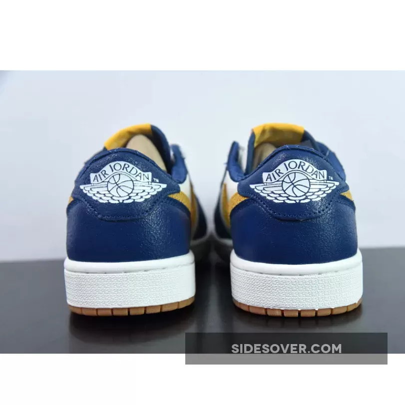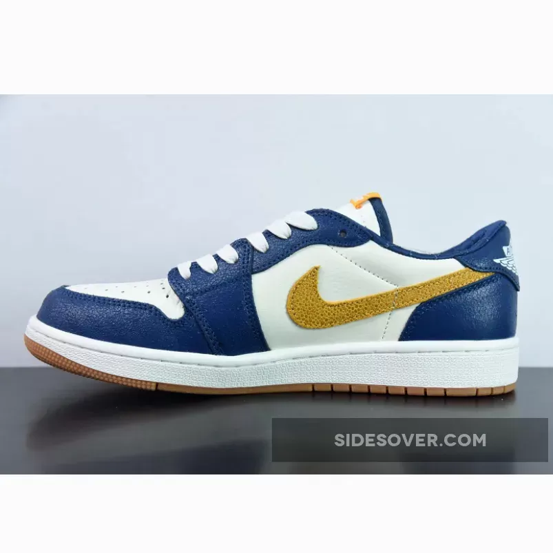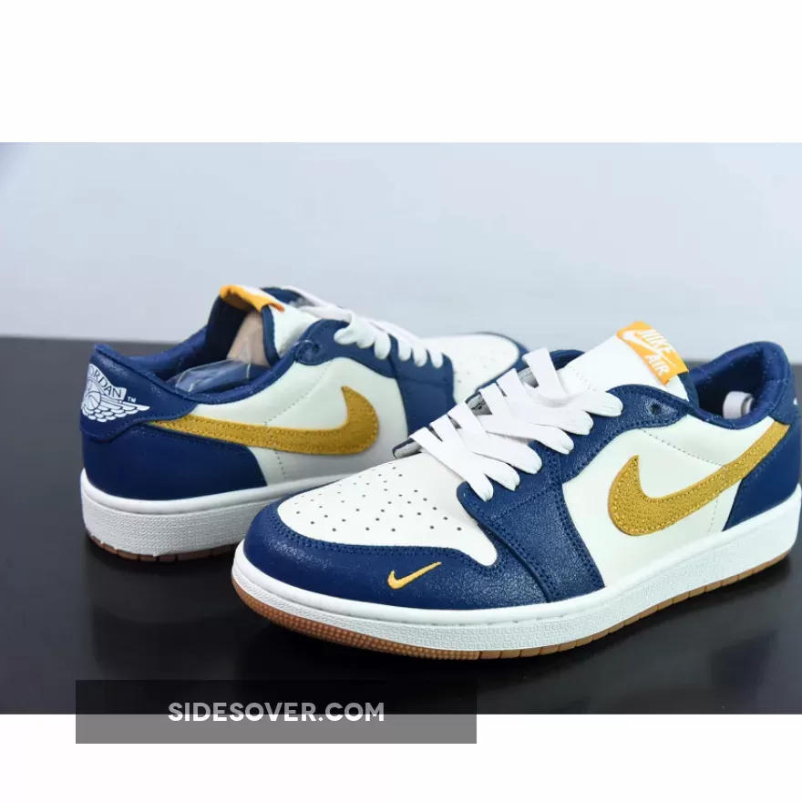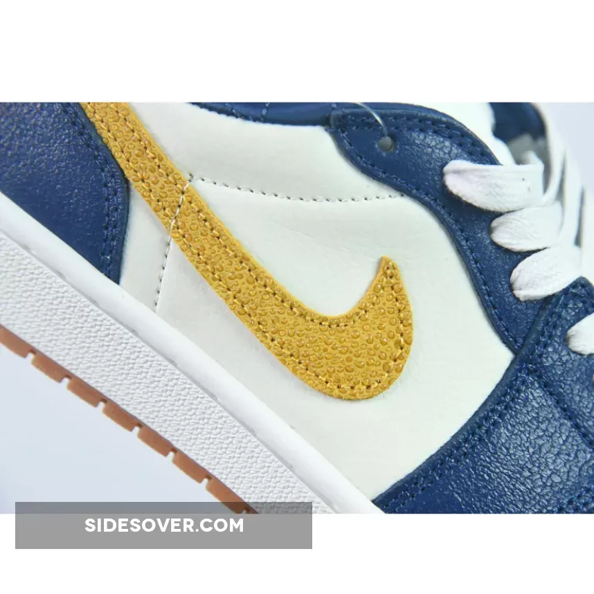Solid colorway on the Air Jordan 1 Low OG ‘Marquette’ PE! The pebbled Swoosh and textured overlays elevate the design. The combination of Sail leather and Navy Blue is timeless, while the University Gold accents add a touch of luxury. Comfortable and stylish, perfect for any sneaker collection!