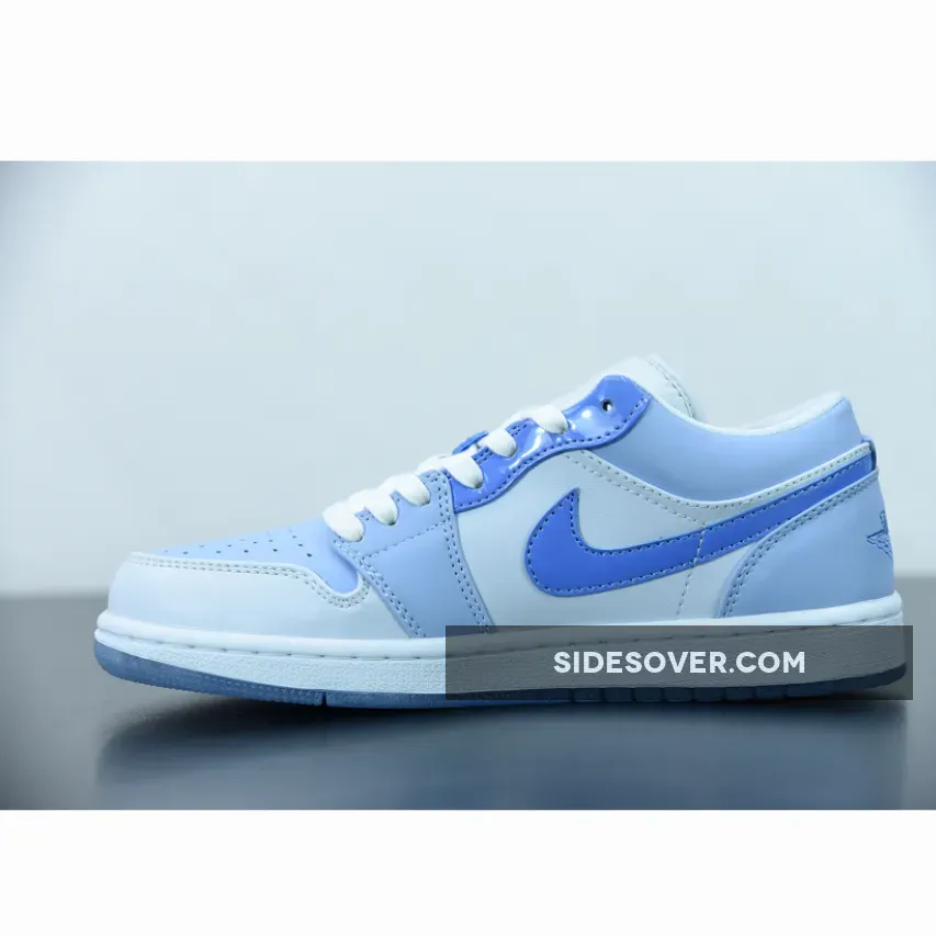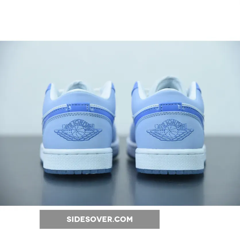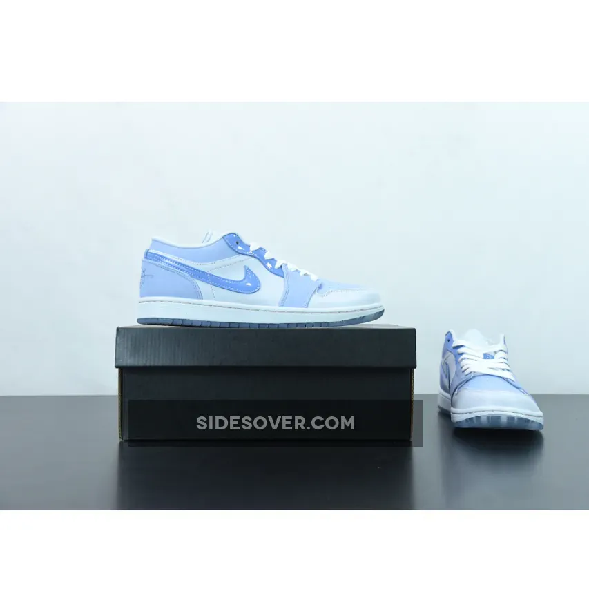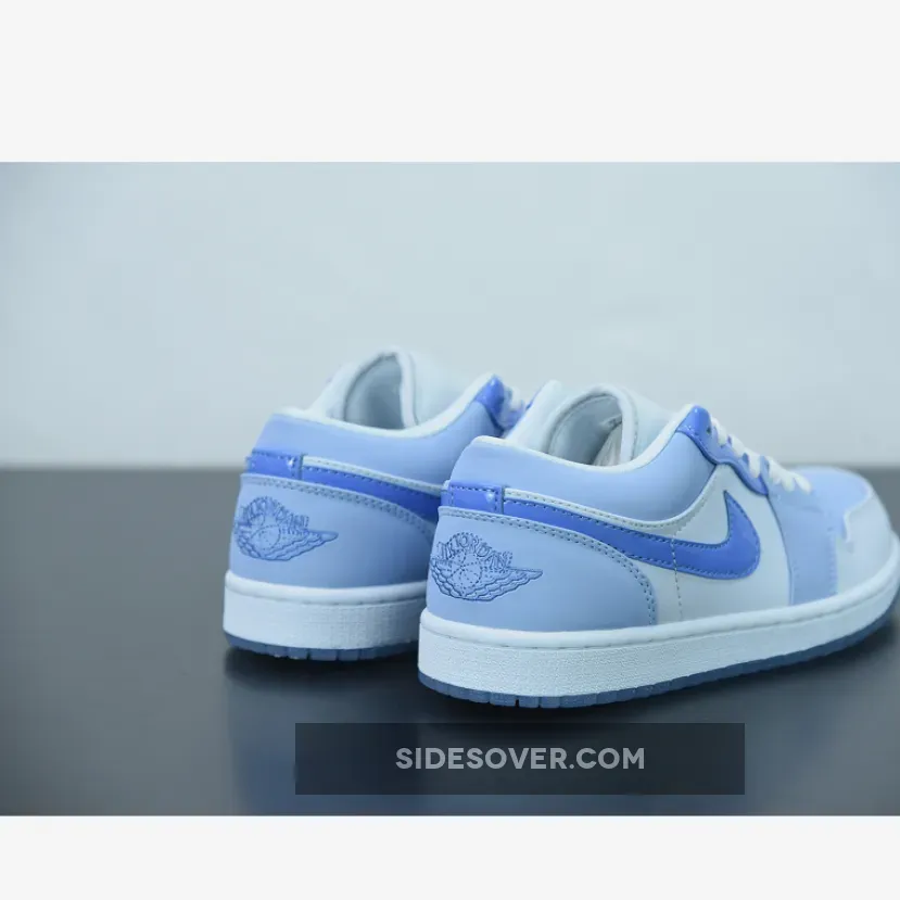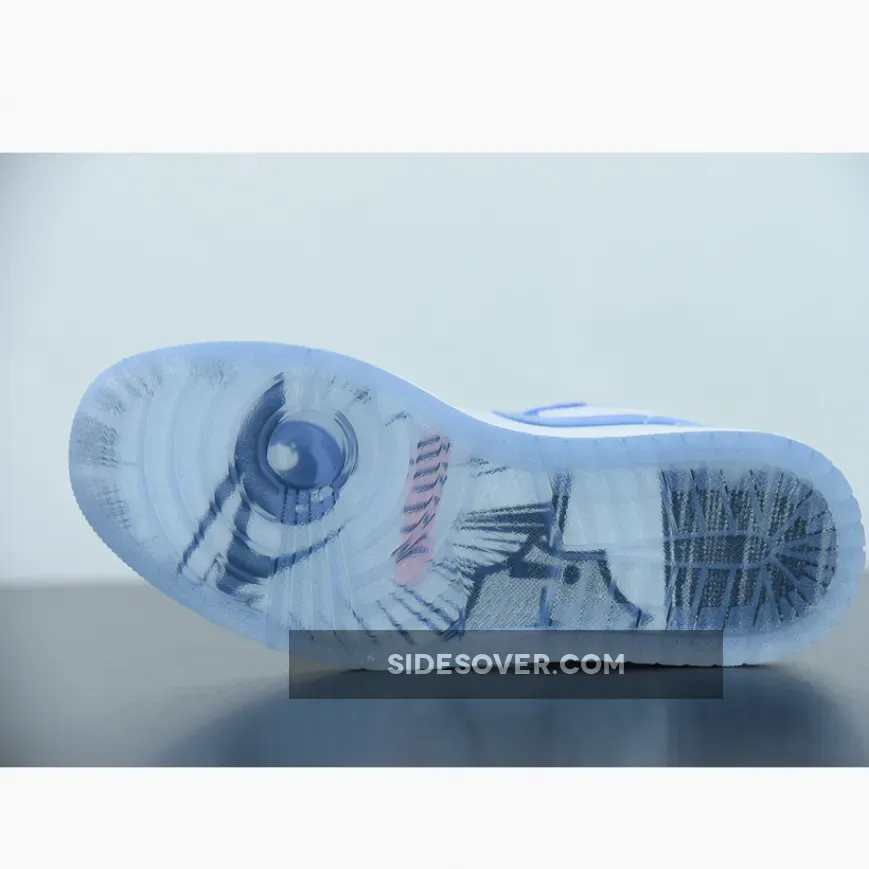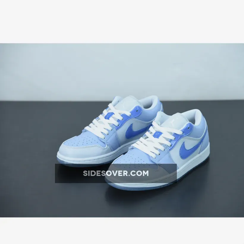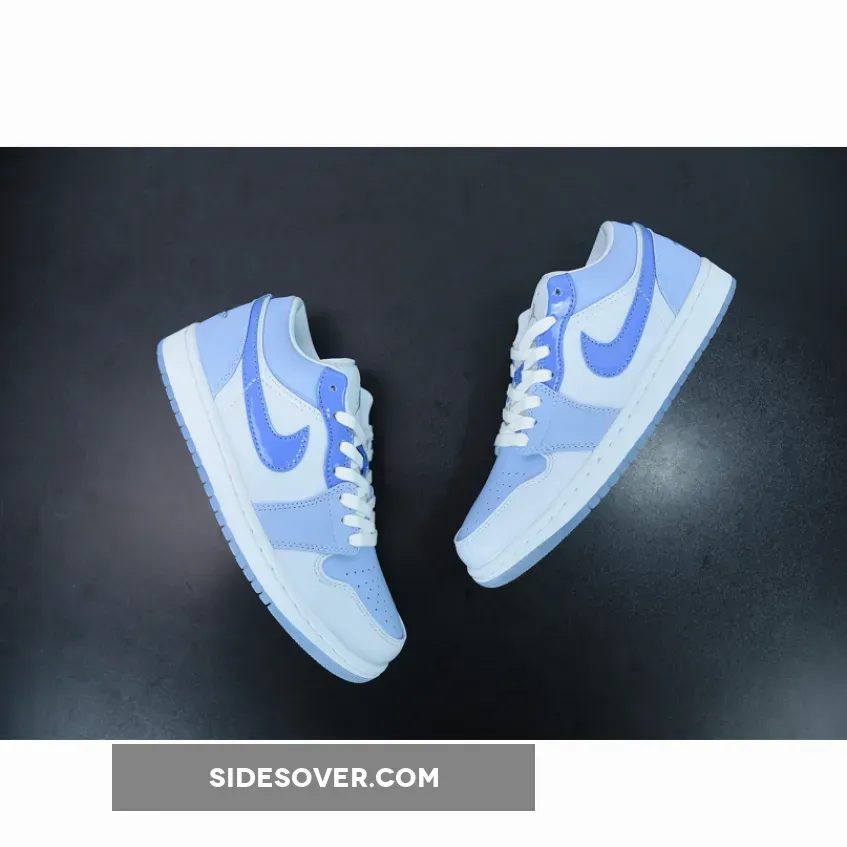 Following our look at the Pink pair, this Air Jordan 1 Low that’s said to be inspired by anime comes with White leather on the panels, liner, laces, and midsole. Next, we have shades of Blue on the overlays and Swoosh logos. Lastly, we have a translucent outsole with eyes underneath.
