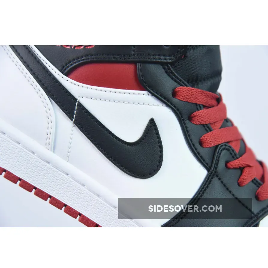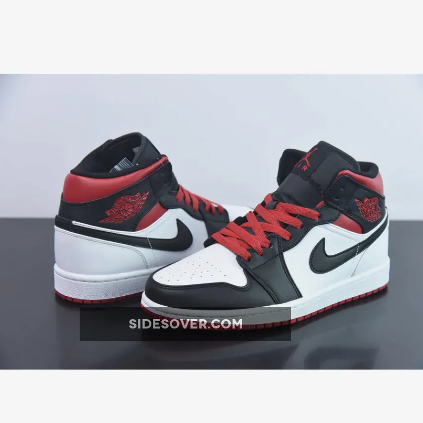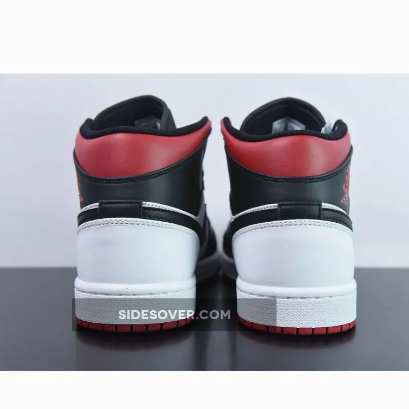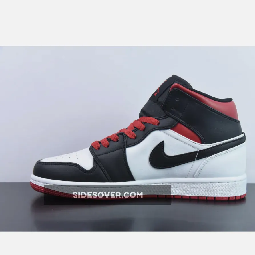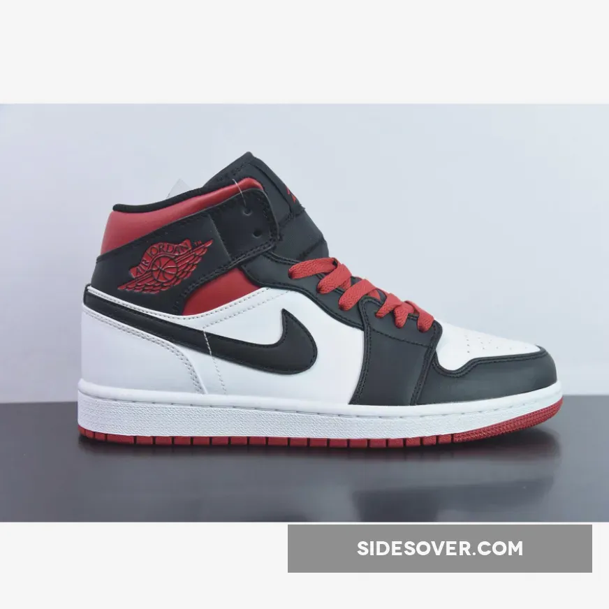 This Air Jordan 1 Mid is introduced in another clean colorway as this rendition boasts the favorable color scheme of white, black, and red tones.