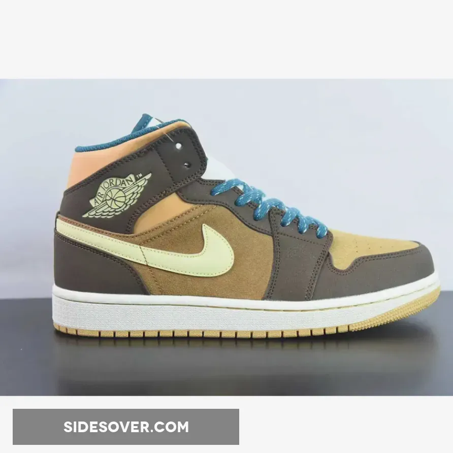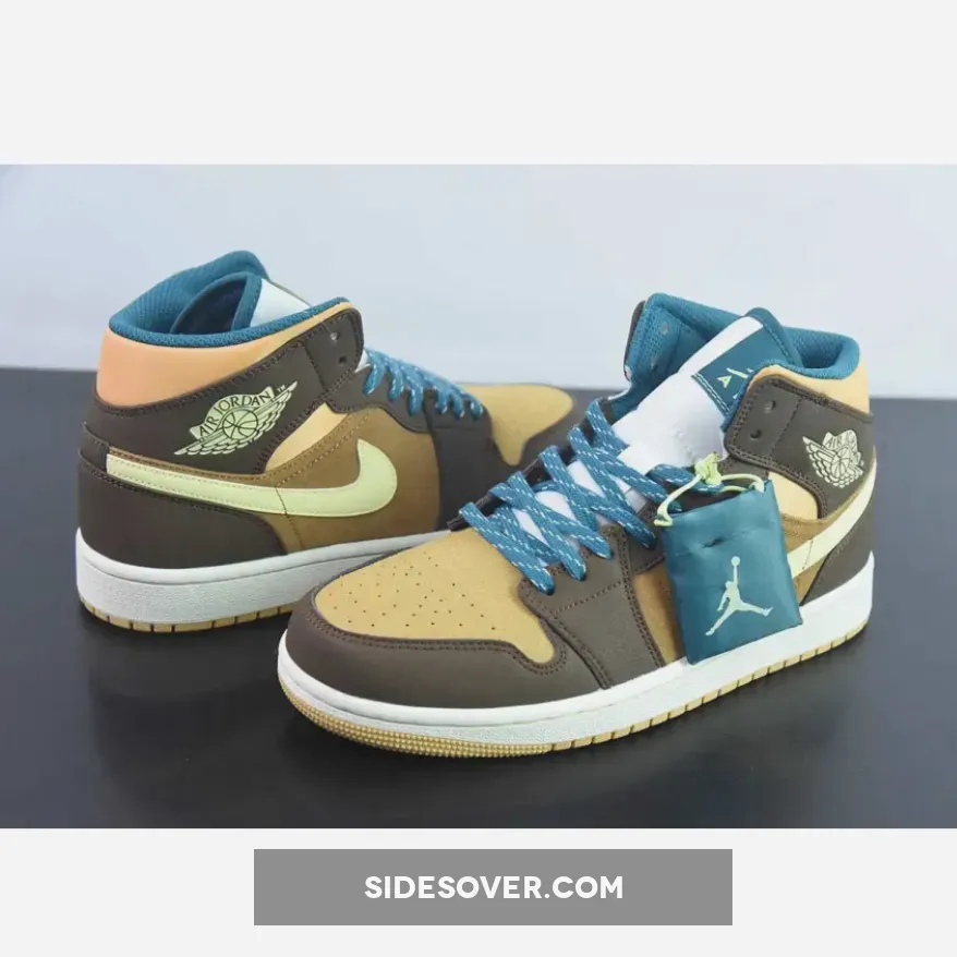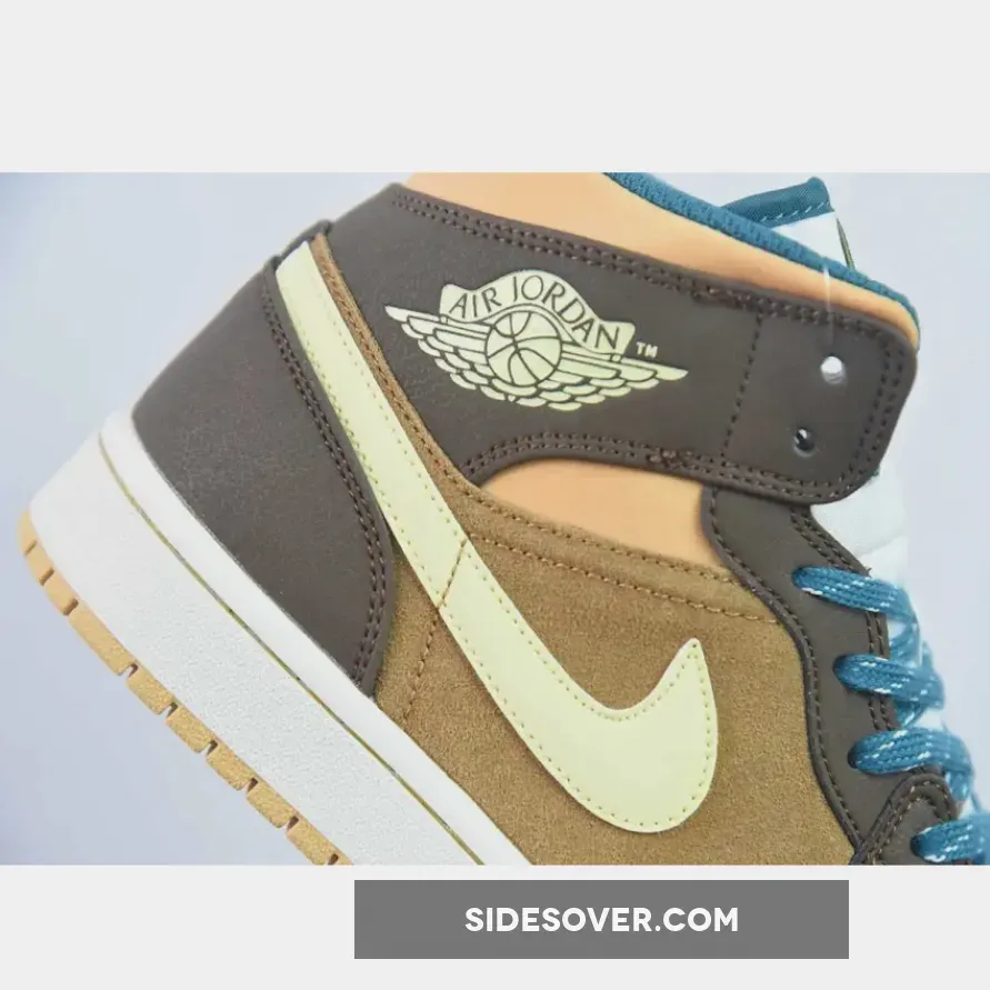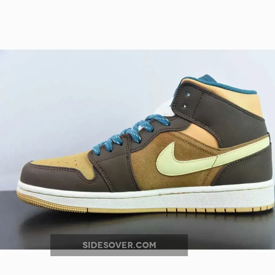 This offering of the Air Jordan 1 Mid comes constructed in a mix of leather, hairy suede, and mesh materials. It features Brown tones covering majority of its upper with Yellowish Swooshes, Wings on the ankle, and Jumpman logos on the tongues and insoles. In addition to being cosy and supportive, the mid-top sneaker’s perforated toe box and breathable materials keep you fresh even on the hottest summer days.