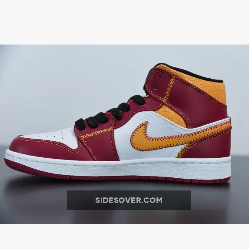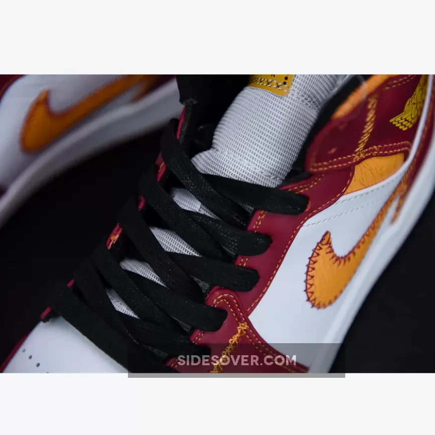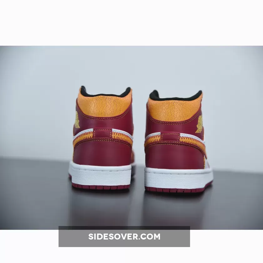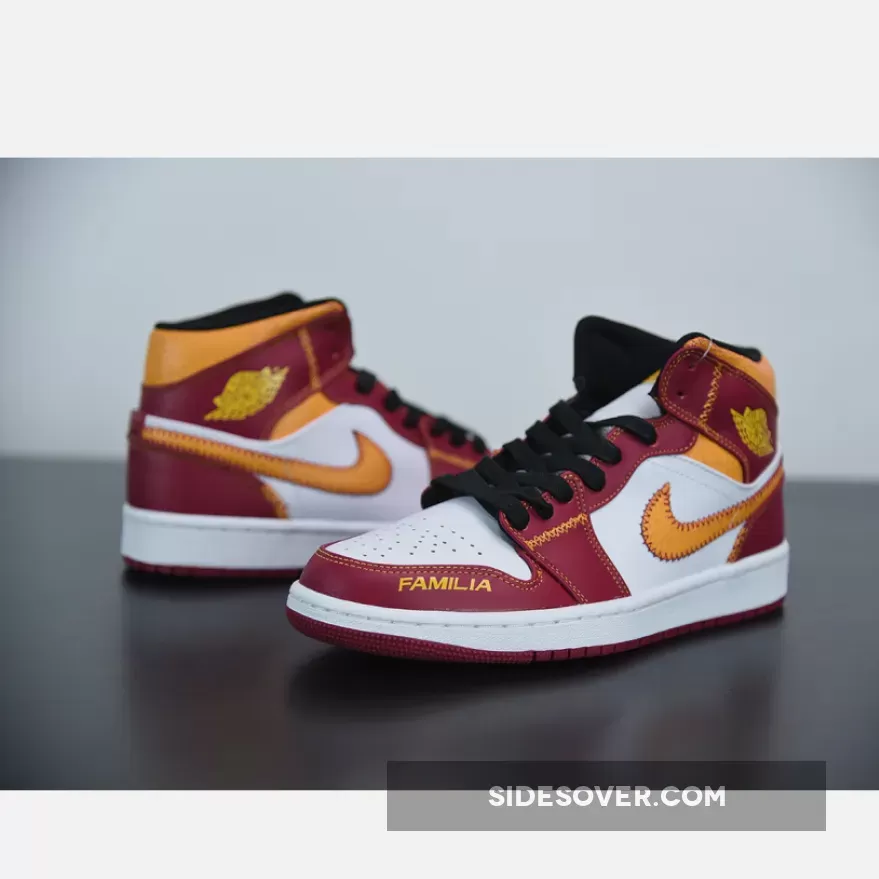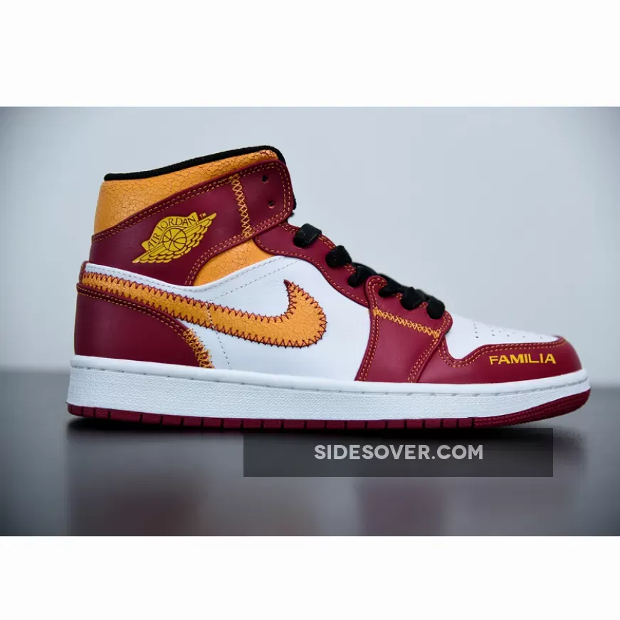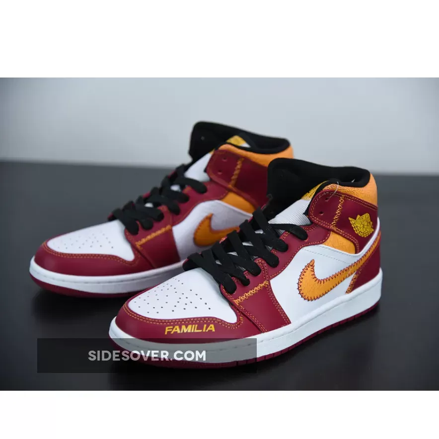While not officially announced as part of a Latinx Heritage Month collection, images of the mid-top Jordan 1 have surfaced shortly after the Converse Mi Gente capsule. Furthermore, the Spanish-word for “family” is inscribed on the lateral forefoot, and works in-tandem with not only the pair’s color palette, but also detailing to ostensibly nod to Mexican culture. The crackled swooshes and collar underlay mimic a fissured desert floor, while surrounding purplish overlays evoke a twilight. Golden labels on the mesh tongue borrow their design from traditional papel picado decorations; the left shoe’s sockliner features a floral graphic made from a slew of swooshes