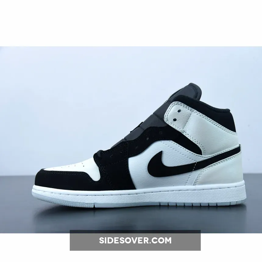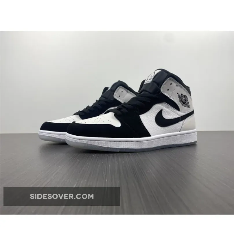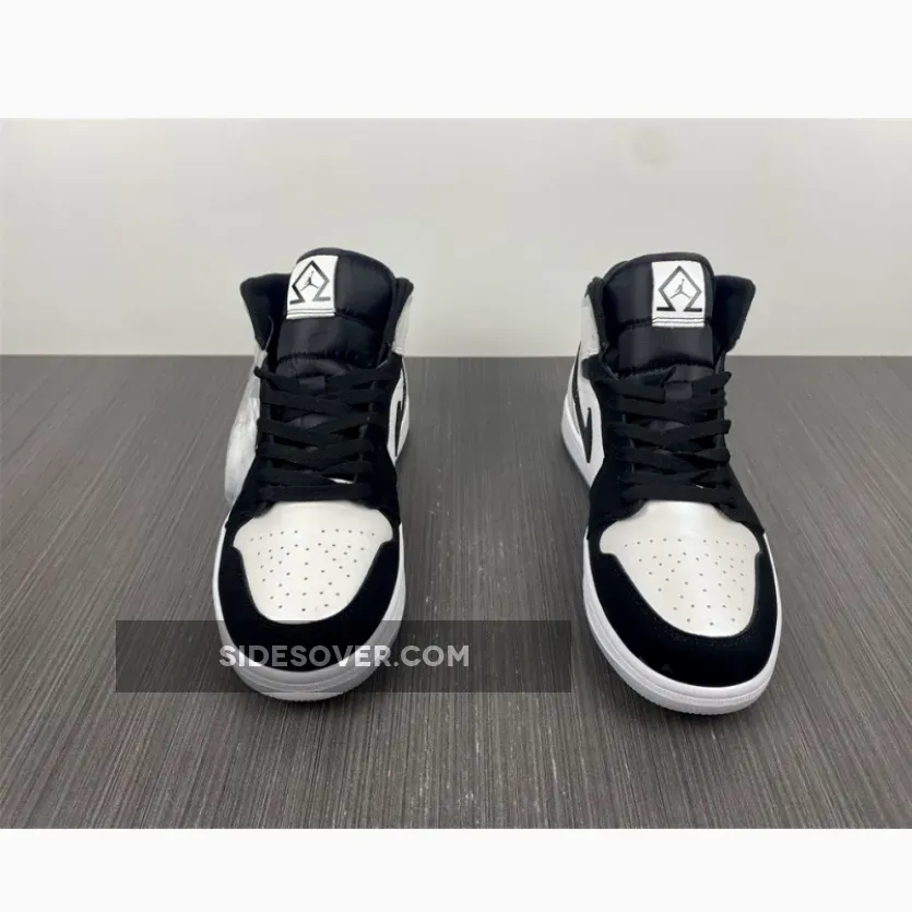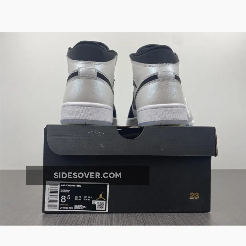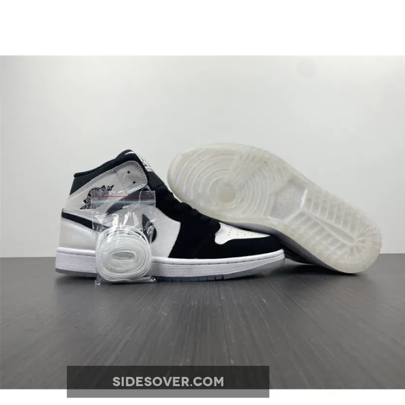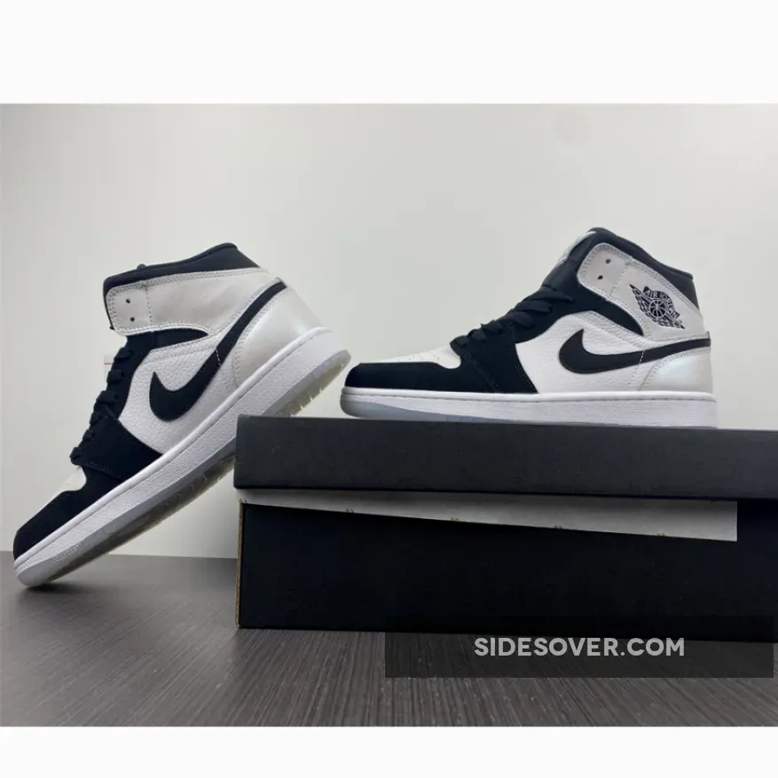 The Air Jordan 1 Mid SE ‘Diamond’ dresses the classic silhouette in a simple two-tone palette celebrating the 75th anniversary of the NBA. The mid-top carries an all-leather upper that combines a clean white base with contrasting black accents on the forefoot overlay, signature Swoosh, and mid-cut collar. The tongue tag displays classic Jumpman branding framed in a geometric shape that nods to the NBA’s diamond anniversary. A white rubber midsole features an encapsulated Air-sole unit in the heel and a milky white translucent rubber outsole underfoot.