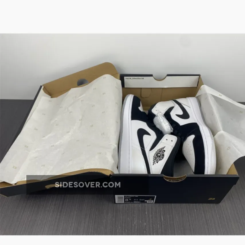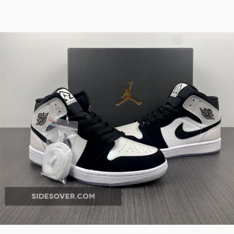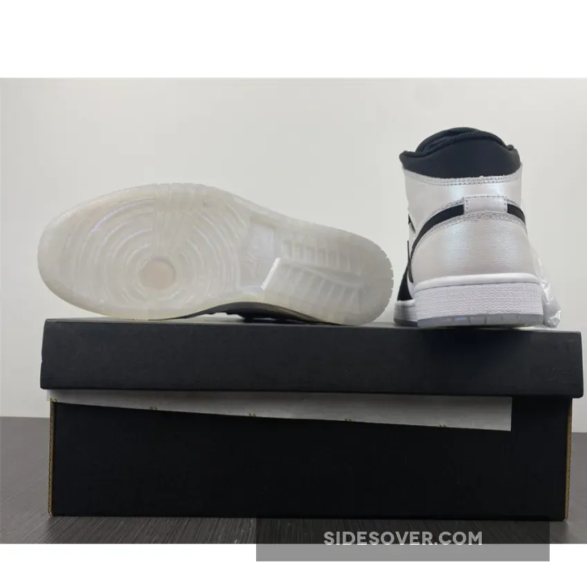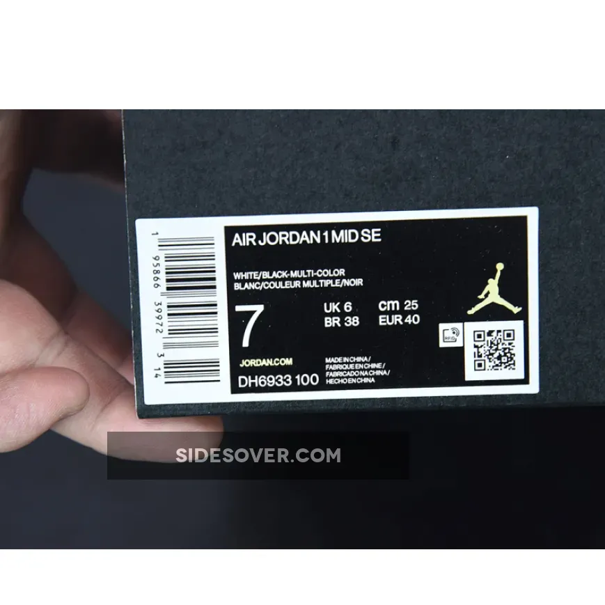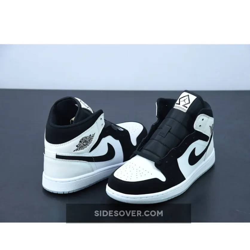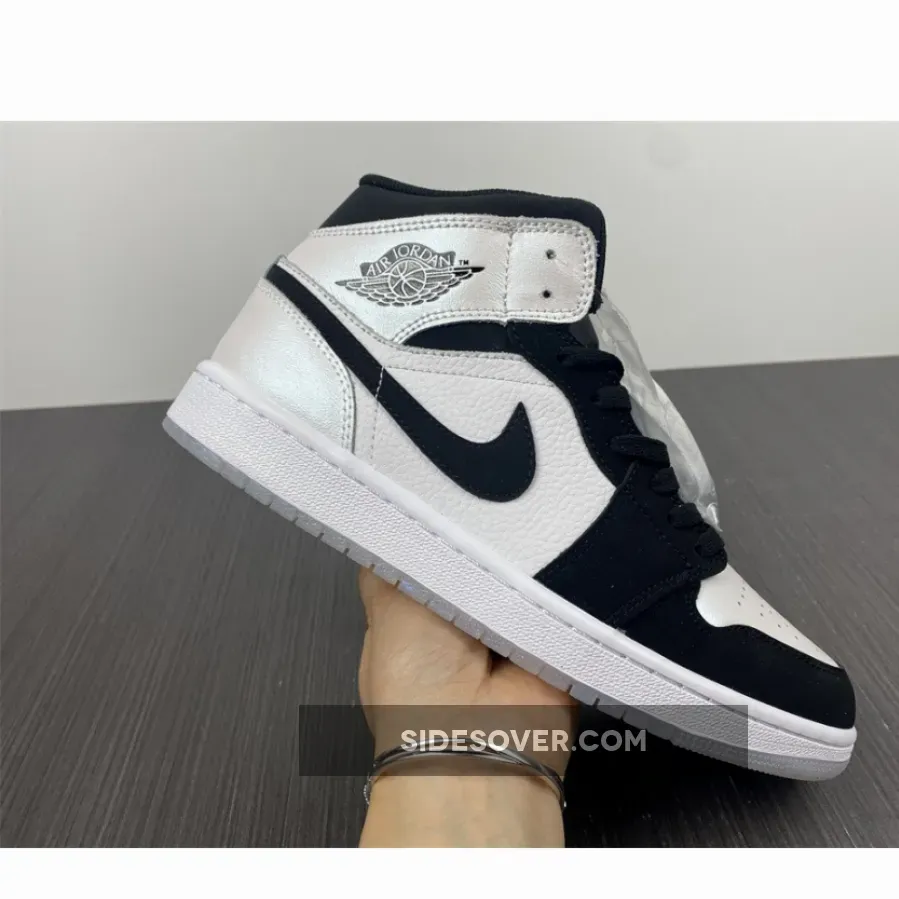 The Air Jordan 1 Mid SE ‘Diamond’ dresses the classic silhouette in a simple two-tone palette celebrating the 75th anniversary of the NBA. The mid-top carries an all-leather upper that combines a clean white base with contrasting black accents on the forefoot overlay, signature Swoosh, and mid-cut collar. The tongue tag displays classic Jumpman branding framed in a geometric shape that nods to the NBA’s diamond anniversary. A white rubber midsole features an encapsulated Air-sole unit in the heel and a milky white translucent rubber outsole underfoot.