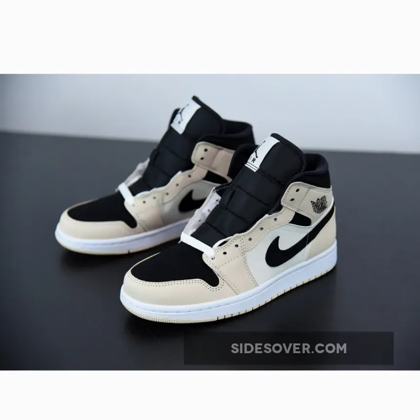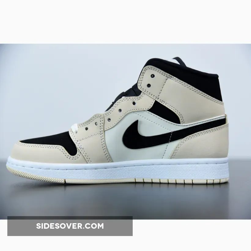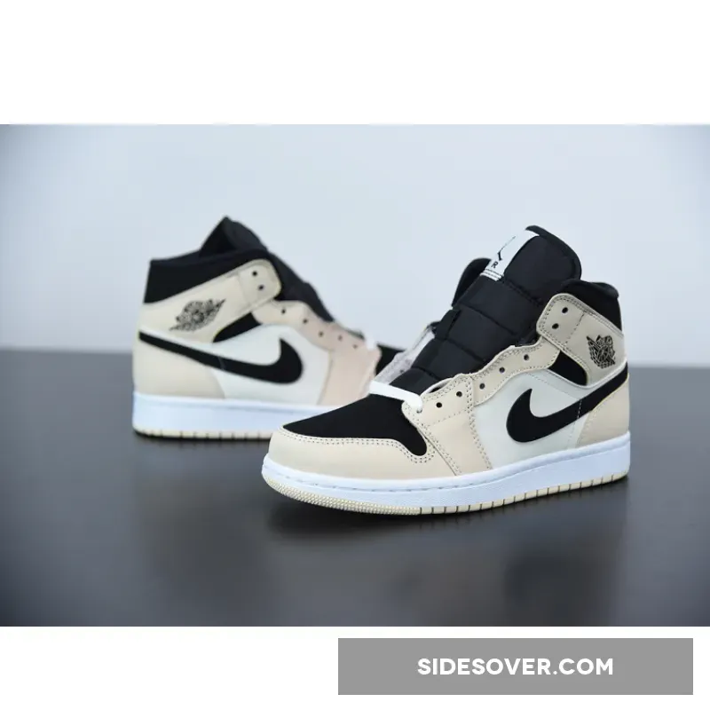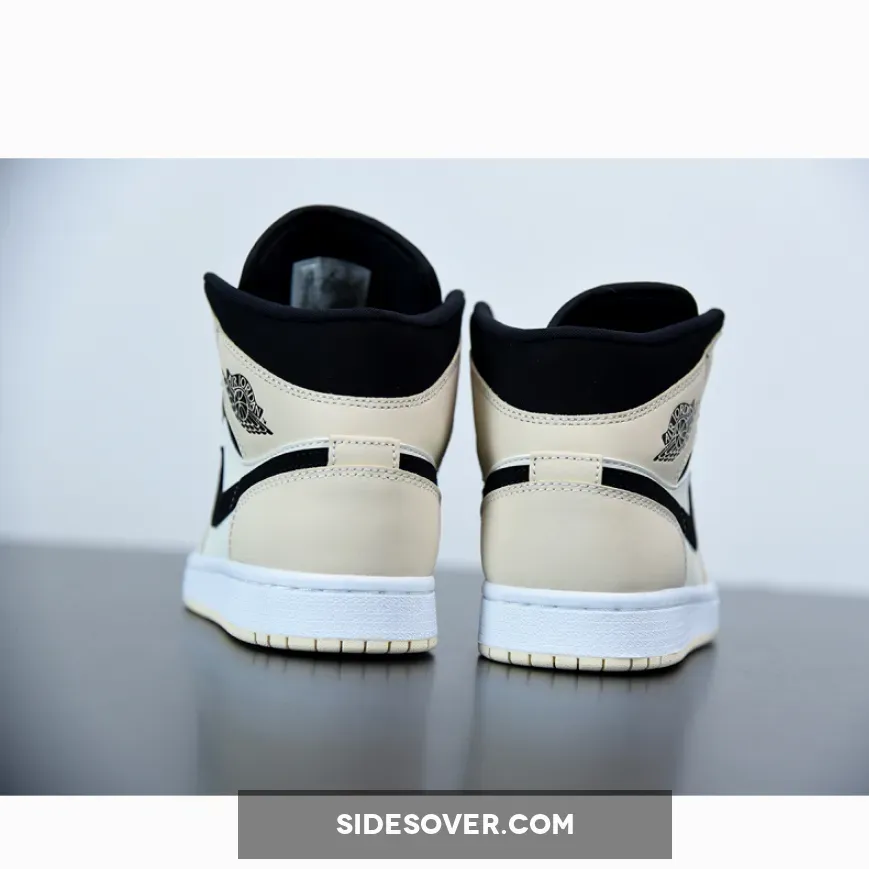 Jordan 1 Mid are clad in black and faint yellow and orange. The latter two hues take over the Jordan 1‘s signature overlays, with the lighter of the two most prominent at the midfoot and laces. Black interrupts the two-tone color scheme at the profile Swooshes, collar panels, lateral ankle “ball-and-wings” insignia, tongue, and toe box, in an almost-reverse arrangement of a forthcoming “Arctic Orange” Jordan 1 Low.