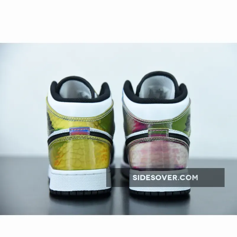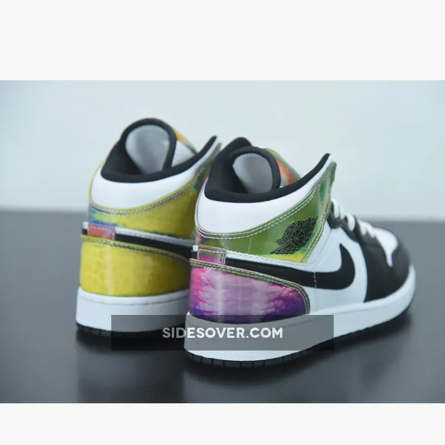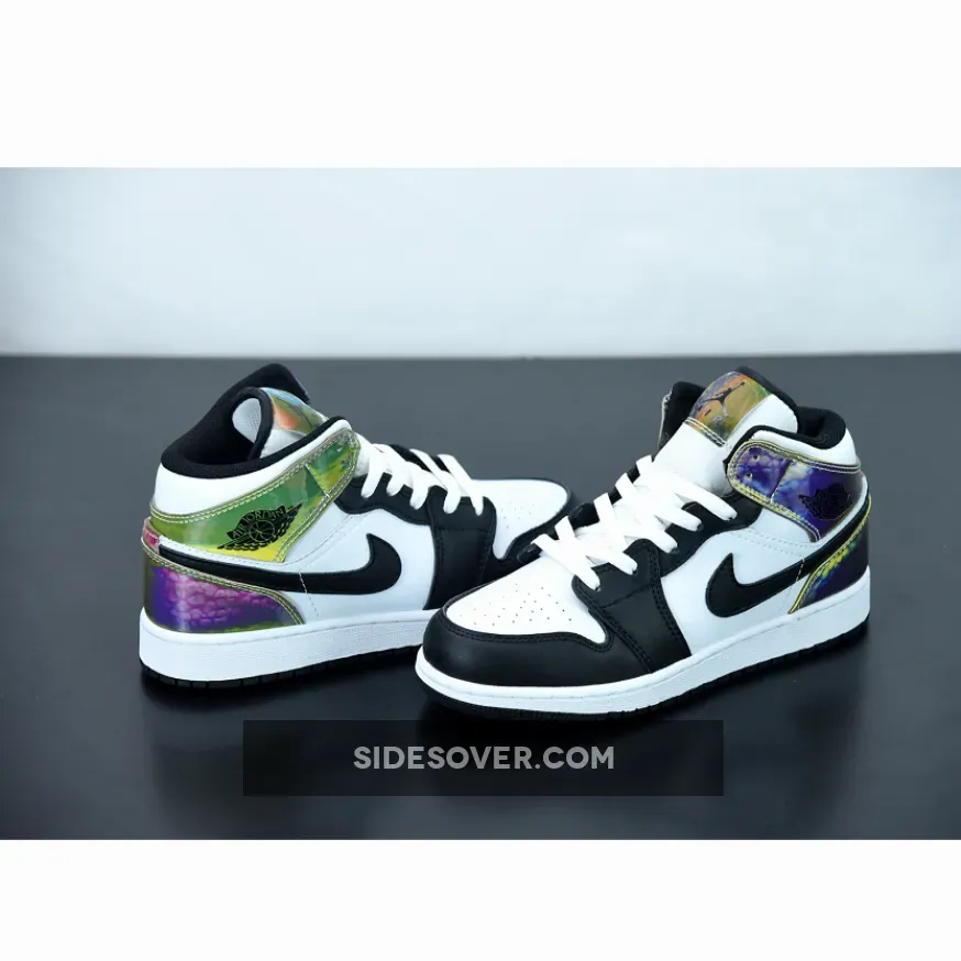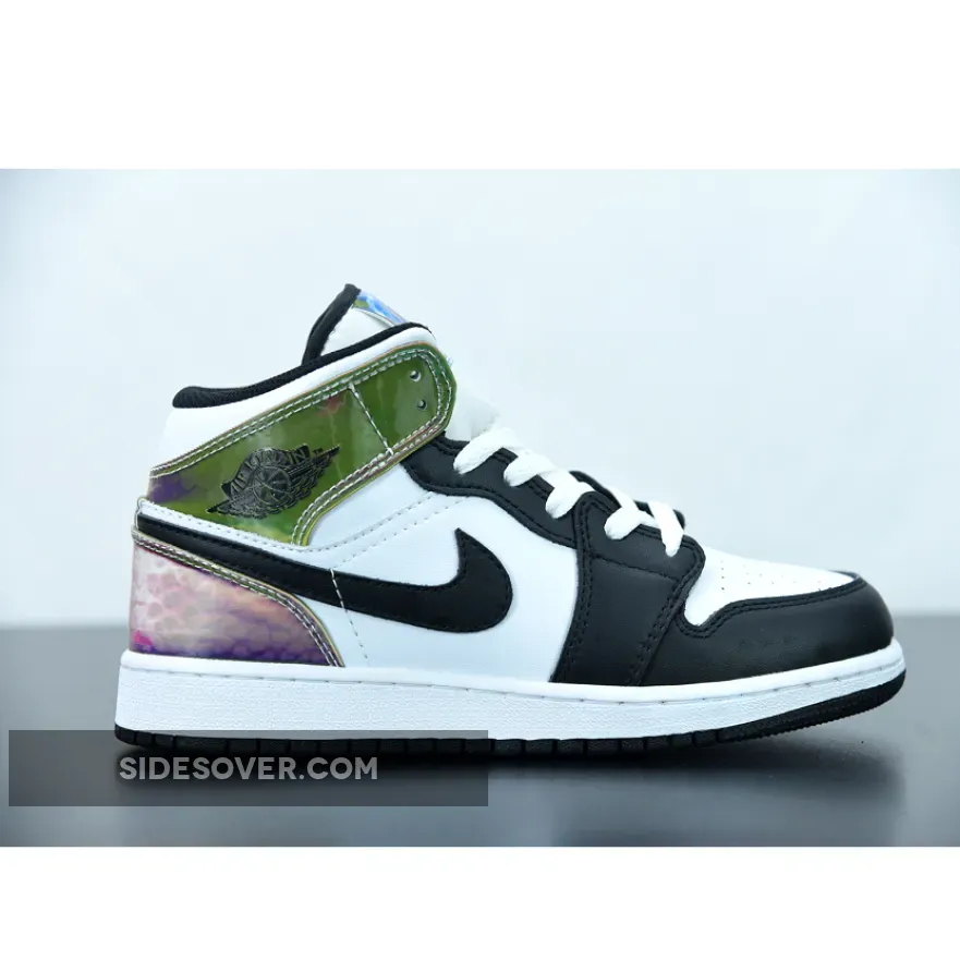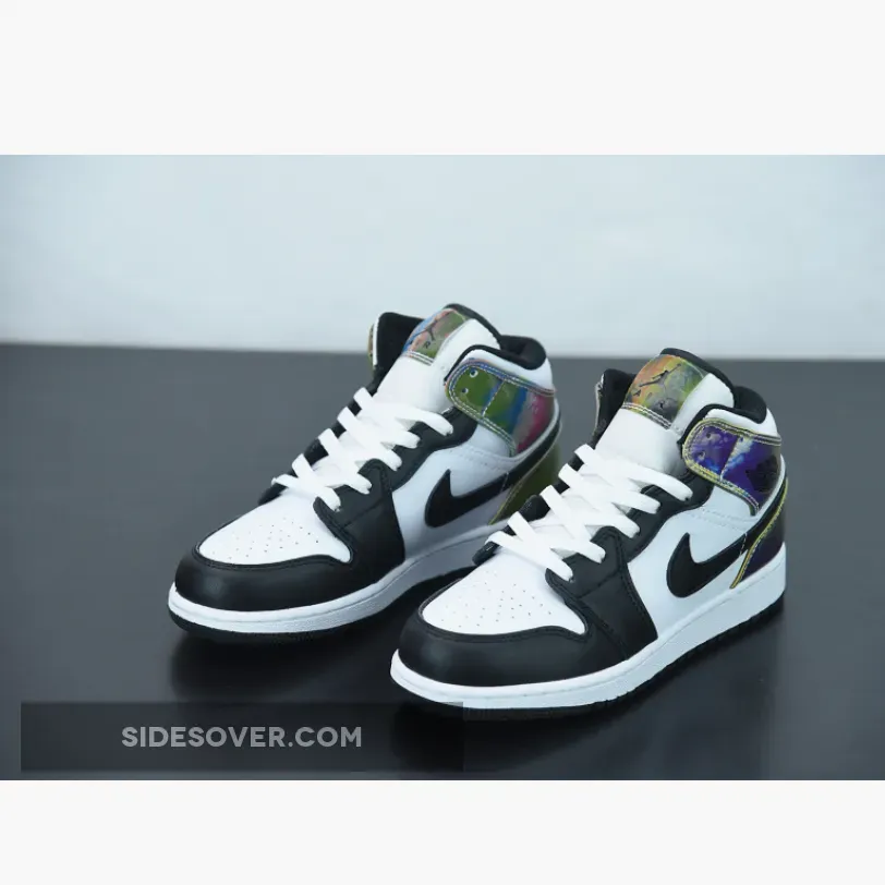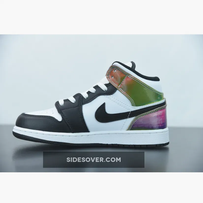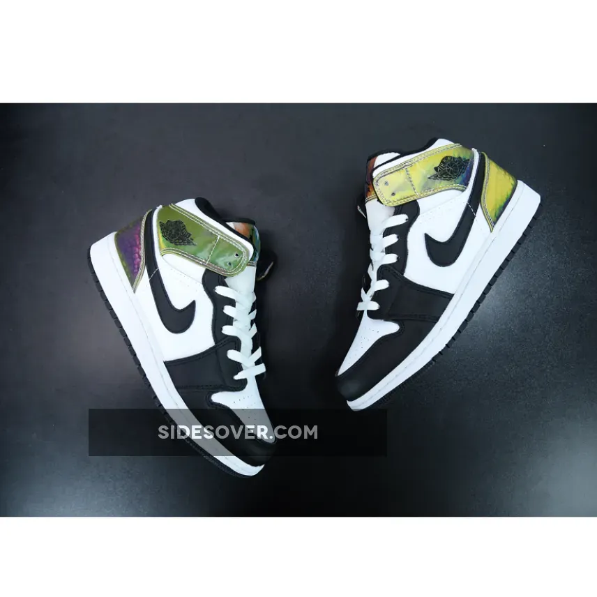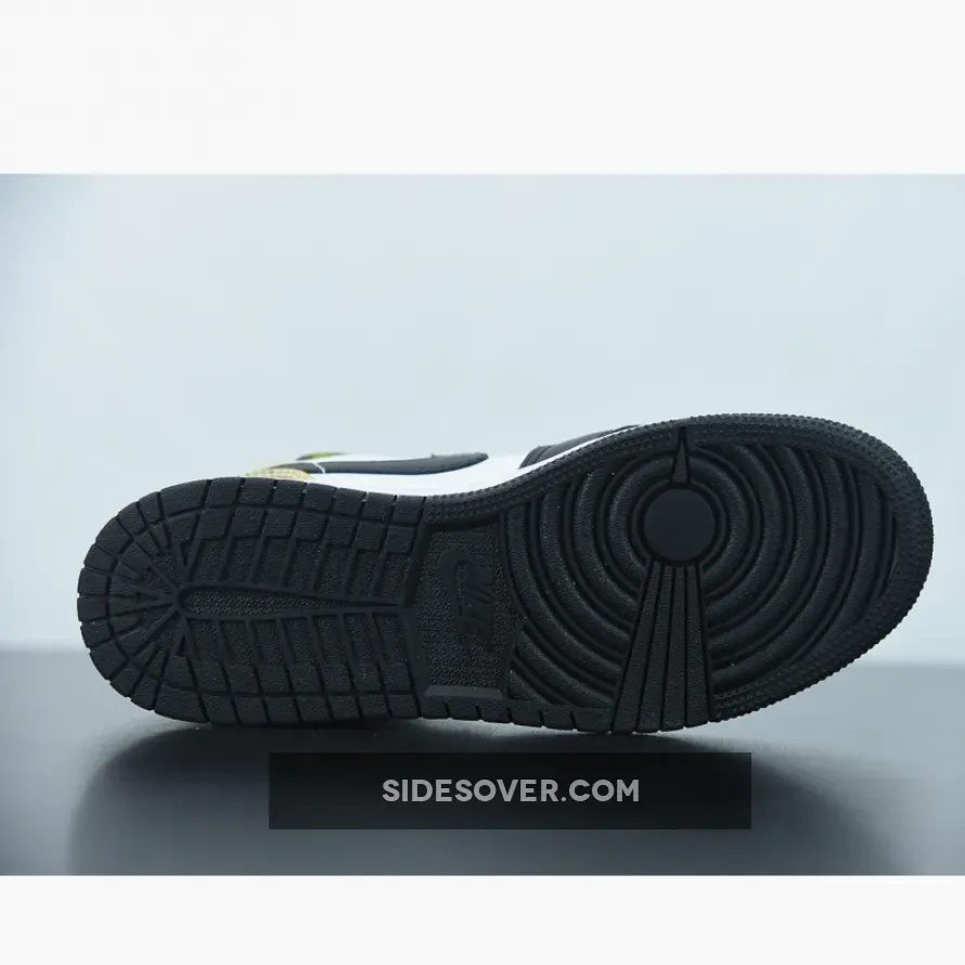 this mid-top Air Jordan 1 comes highlighted with the classic ‘Black Toe’ theme while featuring White leather on the upper, and Black adorns the overlays, Swoosh logos, and rubber outsole. Sticking out the most, we have heat-sensitive detailing on the heel, tongue label, and ankle overlay, which changes colors.