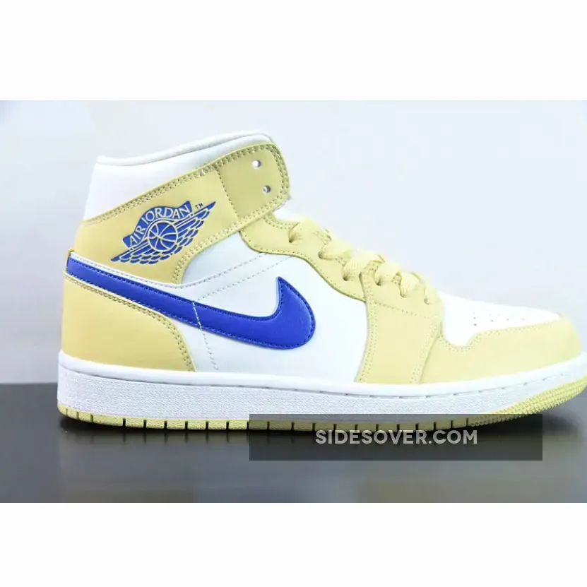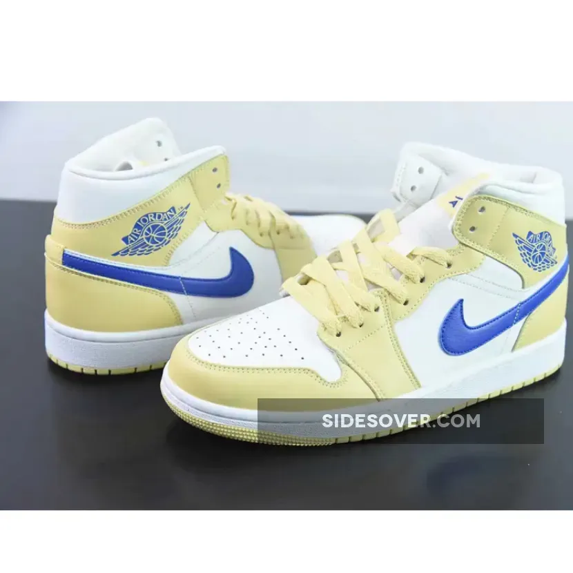 Taking on an official color makeup of Lemon Wash/Lapis-White. This offering of the Air Jordan 1 Mid comes constructed in a full leather build with mesh tongues and lining.