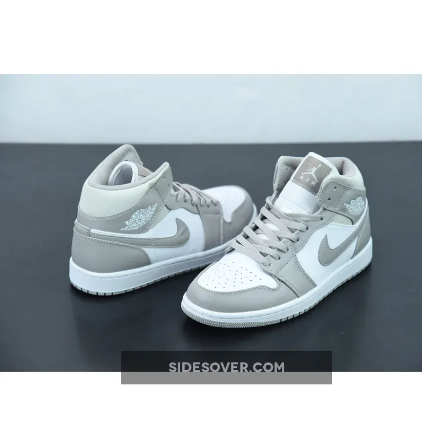 “5/5 stars! ? I’m thoroughly impressed with my Air Jordan 1 Mid “Linen” White purchase. The sleek white base paired with tan overlays creates a stunning visual appeal. ? The comfortable leather build and cushioning make it perfect for daily wear. ? I appreciate the simple design, making it easy to style with casual or dressy outfits. Overall, a great addition to my sneaker collection! ?”
