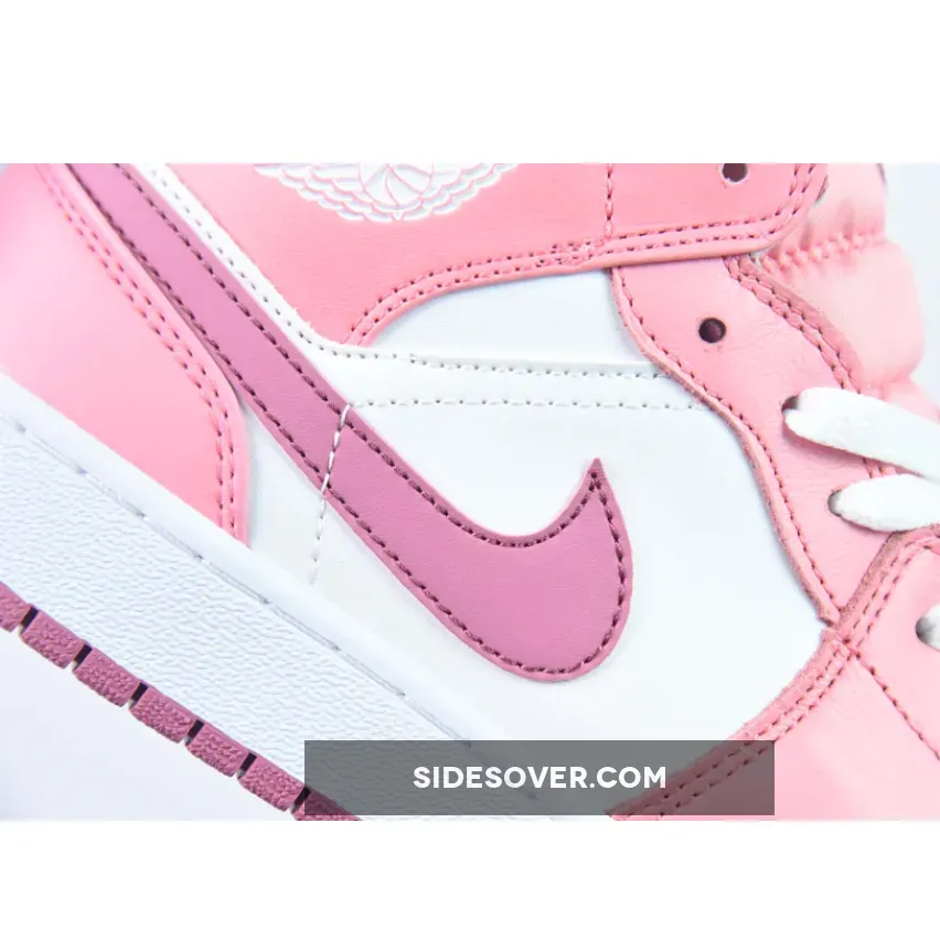 Pretty color combo! Air Jordan 1 Mid “Valentine’s Day” looks ?. Love the smooth white leather base with the pink accents. Perfect for a classic, stylish shoe ?. #AirJordan1 #ValentineShoes #SneakerLove