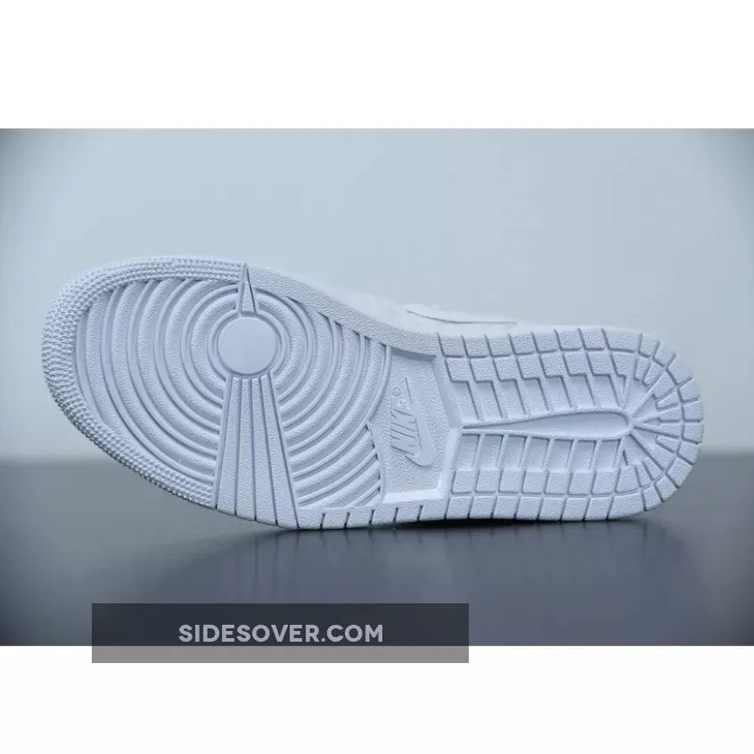 Dressed entirely in white, these Air Jordan 1s combine quilted nylon quarters, toeboxes and collars with leather mudguards, eyestays, Swooshes, heel pieces and collar flaps — making for a look that calls to mind images of Don C‘s Just Don x Air Jordan 2 with its build if not its materials. The smooth nature of these leather overlays provides a compelling contrast with the textured nature of the base layer, and further pops of detail are served up by a debossed ball-and-wings on the collar flap, a Jumpman on the tongue and a straightforward white midsole/outsole.