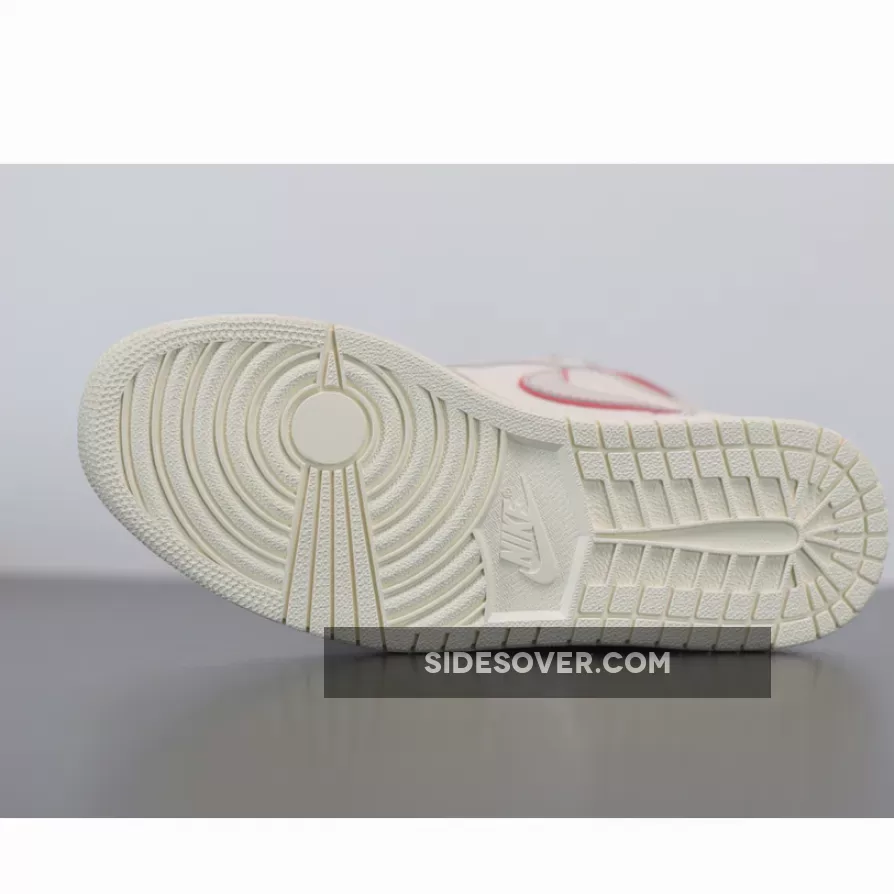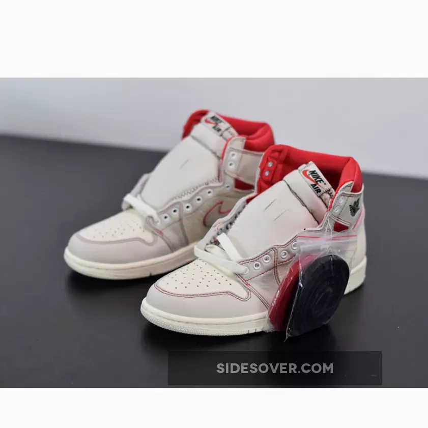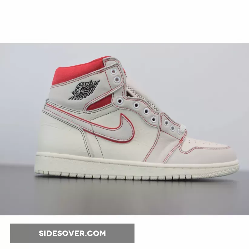 Dressed in a Sail, Black, Phantom, and University Red color scheme. This Air Jordan 1 features a Sail leather upper with Red accents on the stitching, outlined Swoosh and ankle collar. Black detailing on the Wings and tongues atop a Sail sole completes the design.