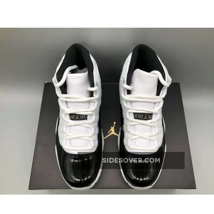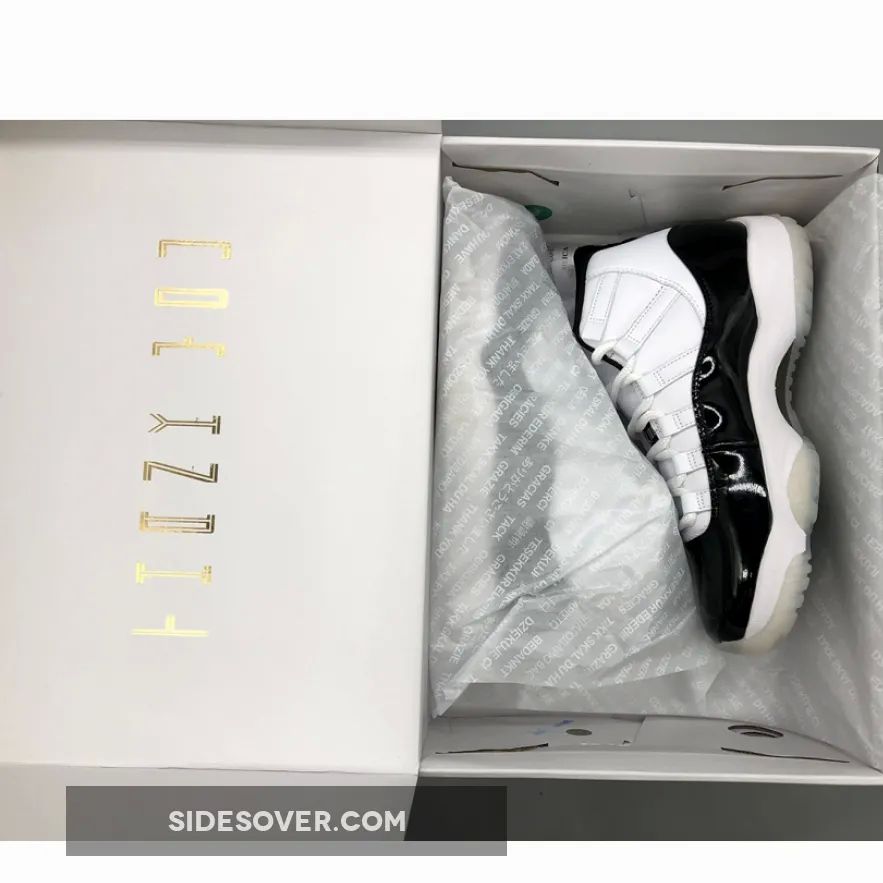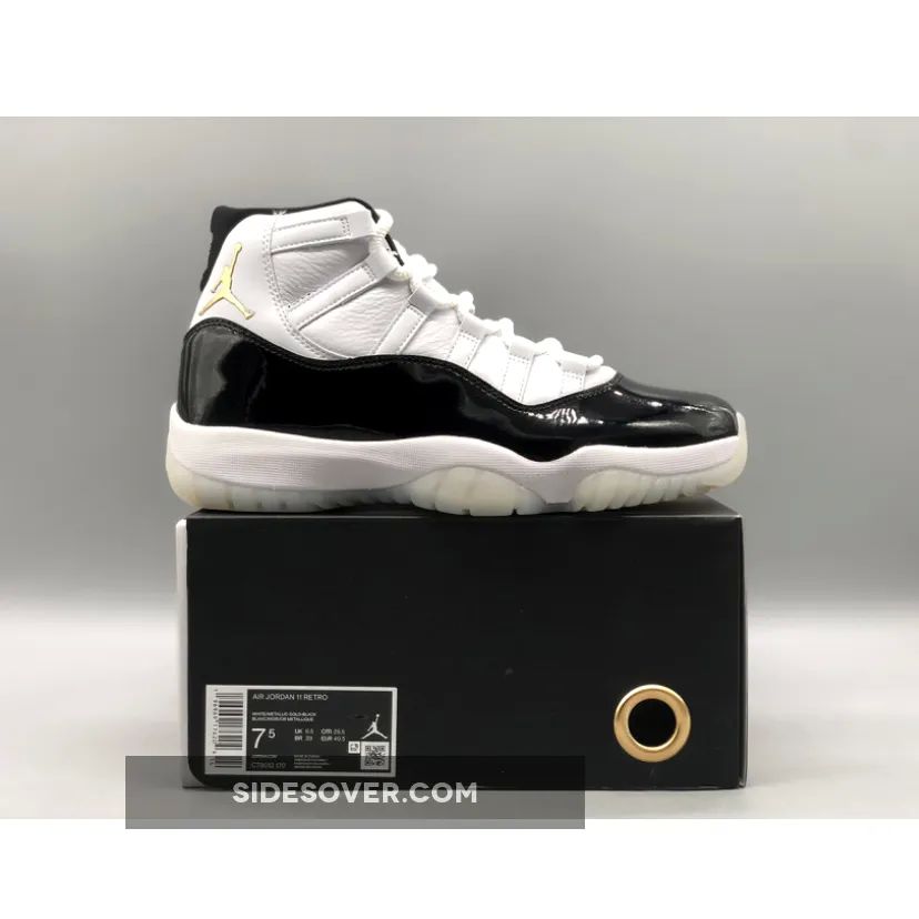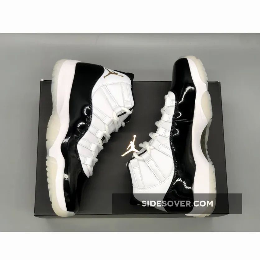 This classic offering of the Air Jordan 11 features a White leather upper instead of mesh with Black patent leather overlays. Highlighting the shoe are Metallic Gold accents on the branding. The pair will also come with a high-cut patent leather for the first time atop a White midsole and icy translucent outsole.
