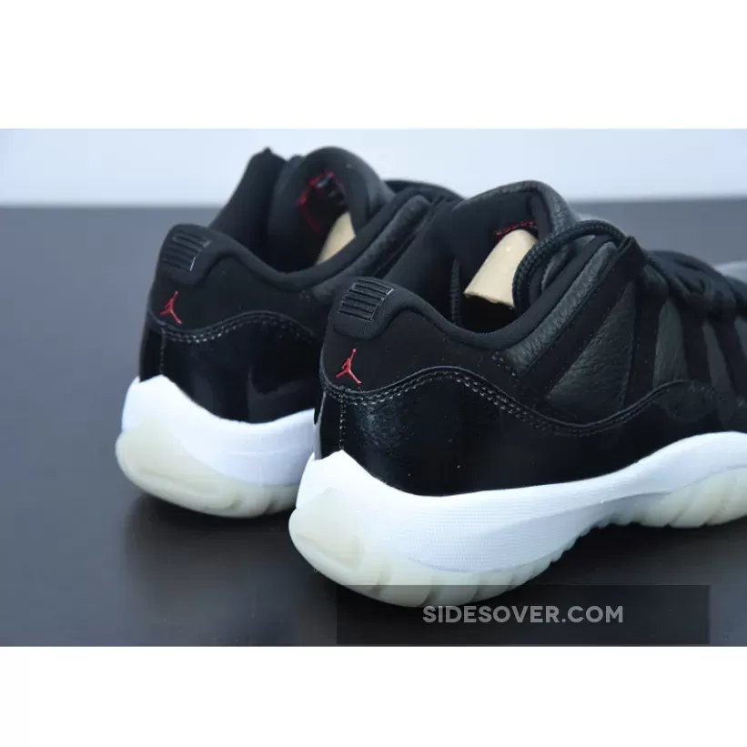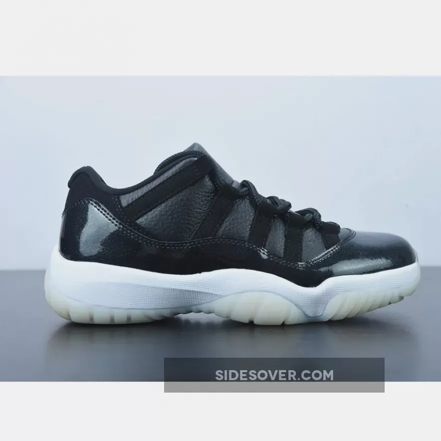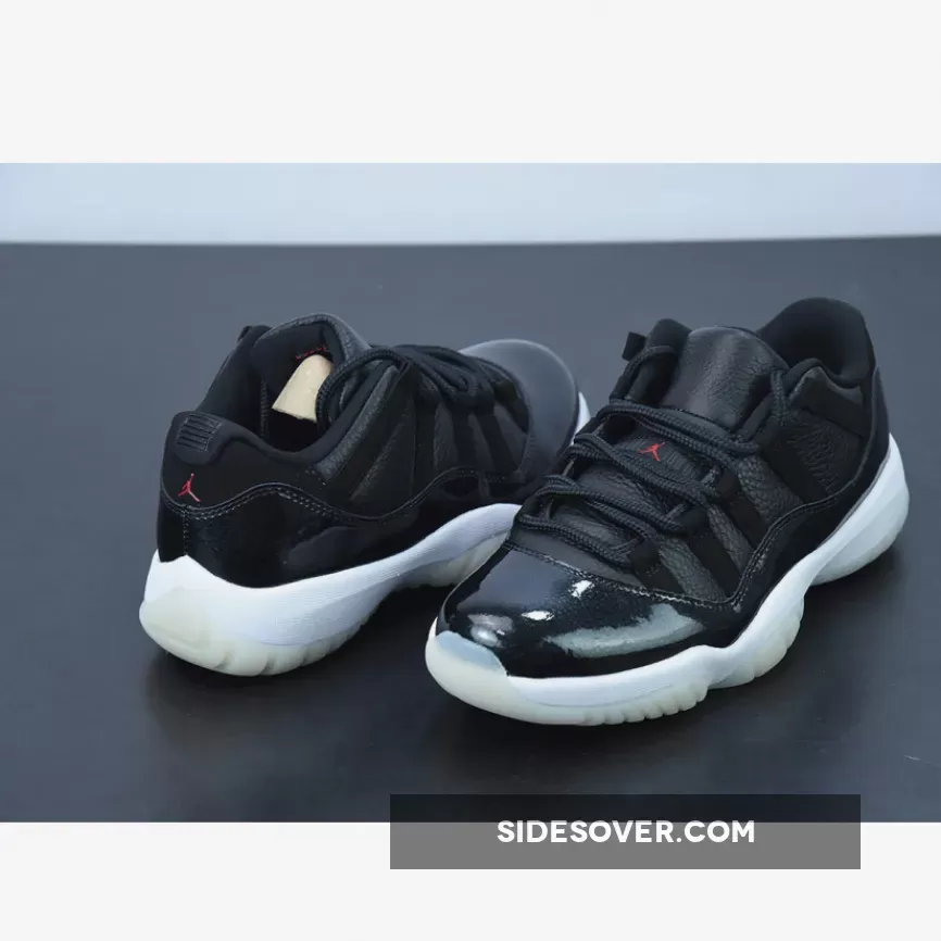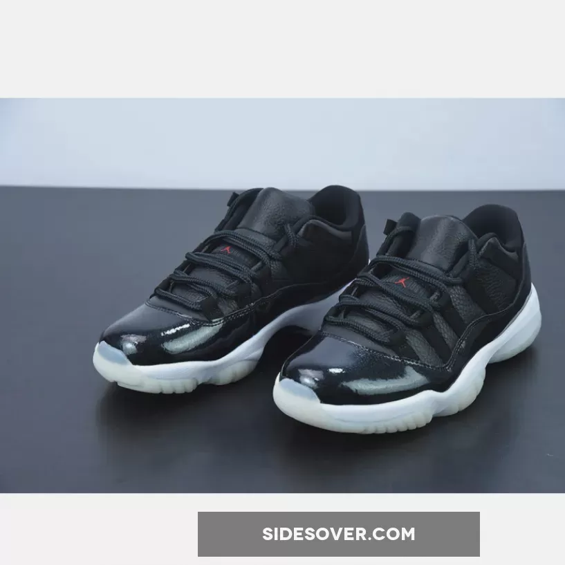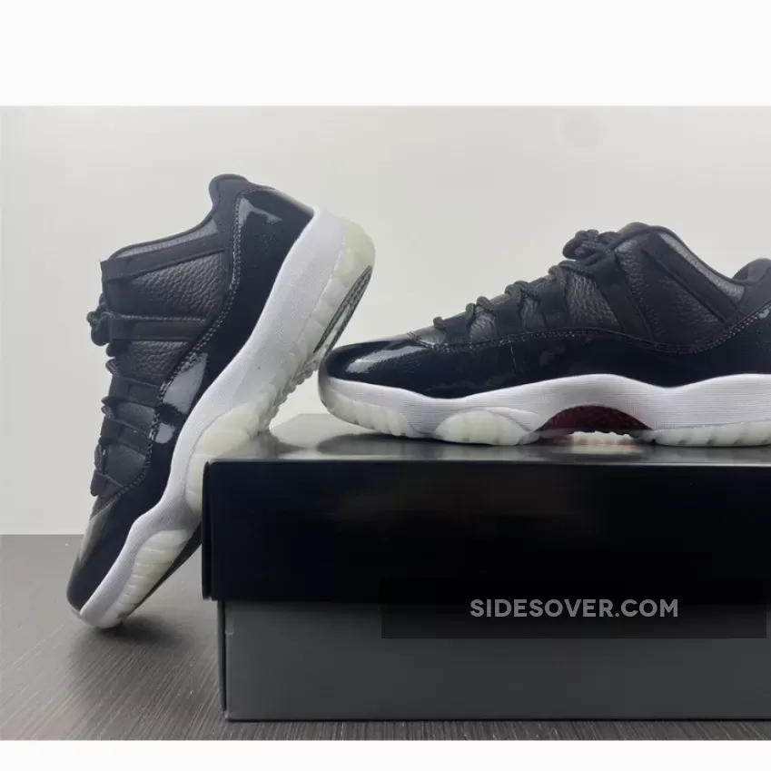 The shoes are a nod to the Chicago Bulls‘ 1995-1996 NBA season when Michael Jordan, Scottie Pippen, Dennis Rodman and company achieved a 72 wins and 10 losses in the regular season — the second greatest record in the league’s history to-date. It also harks back to 2015 when the original Air Jordan 11 model released with this same exact theme. Much like the rendition from seven years ago, the uppers arrive engineered with a solid black tumbled leather material that makes up the side walls and the tongues. “Gym Red” accents appear on the Jumpman insignias atop the heels and banners on the middle of the throat, while the “23” hits on the rear blend in with its stealthy backdrop. Mudguards discards their customary patent leather material and instead brings in a premium leather that is coated with a slightly shimmery gloss.