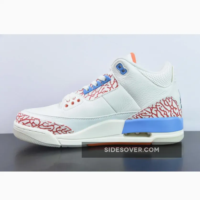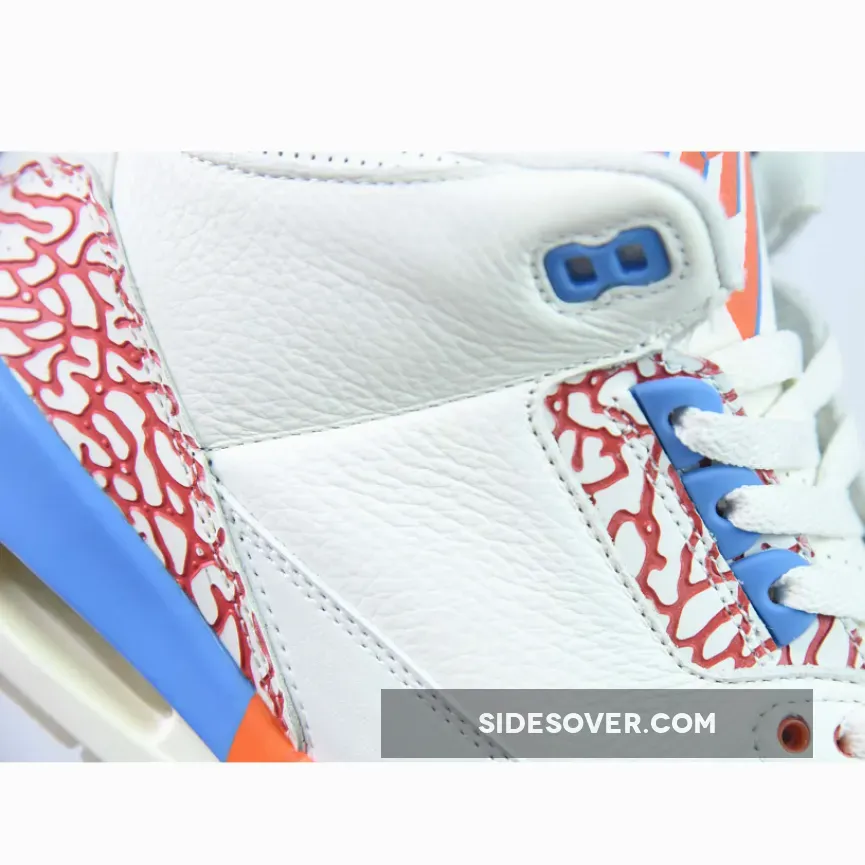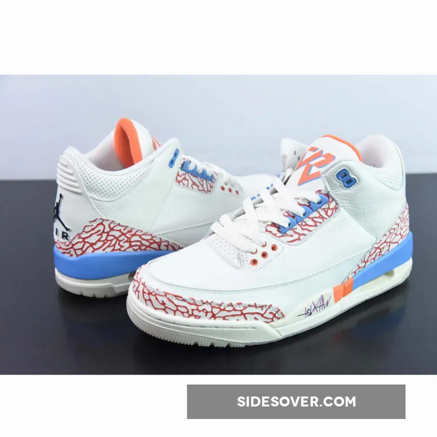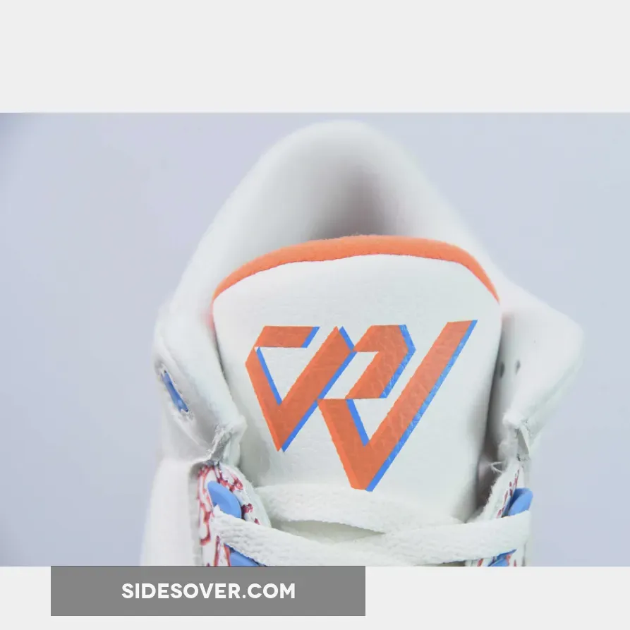 This custom PE uses the colors of the Oklahoma City Thunder as this was Westbrook’s team at the time. The upper is crafted with white tumbled leather and features perforations on the collar and tongue. The sneaker has smooth leather mudguards that showcase Westbrook’s historic stats, meanwhile the lateral midsole features his signature motto “Why Not,” with accents in orange and blue on the elephant print overlays. The tongue features Westbrook’s personal logo, while a black Jumpman logo adorns the heel and insole. A translucent outsole completes the sneaker.
