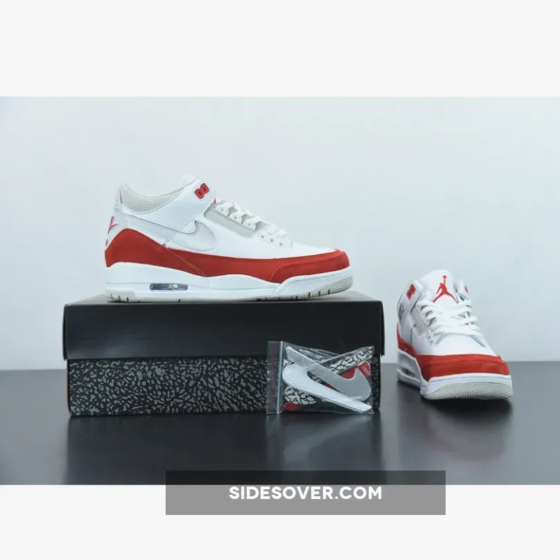 In addition to the elephant-printed Nike swoosh, the Air Jordan 3 Tinker “Air Max” 1 also comes packaged with white, red and reflective grey swooshes. Red suede replaces the traditional elephant print completed with Red Nike Air heel logos similar to the original “Fire Red” release from 1988.