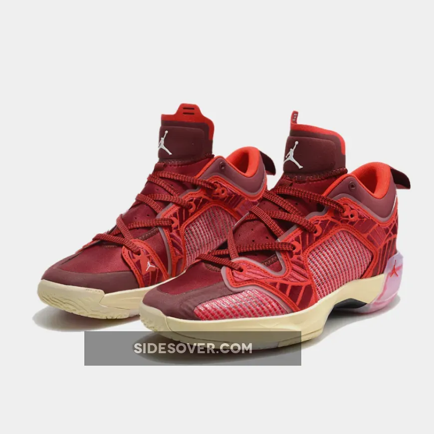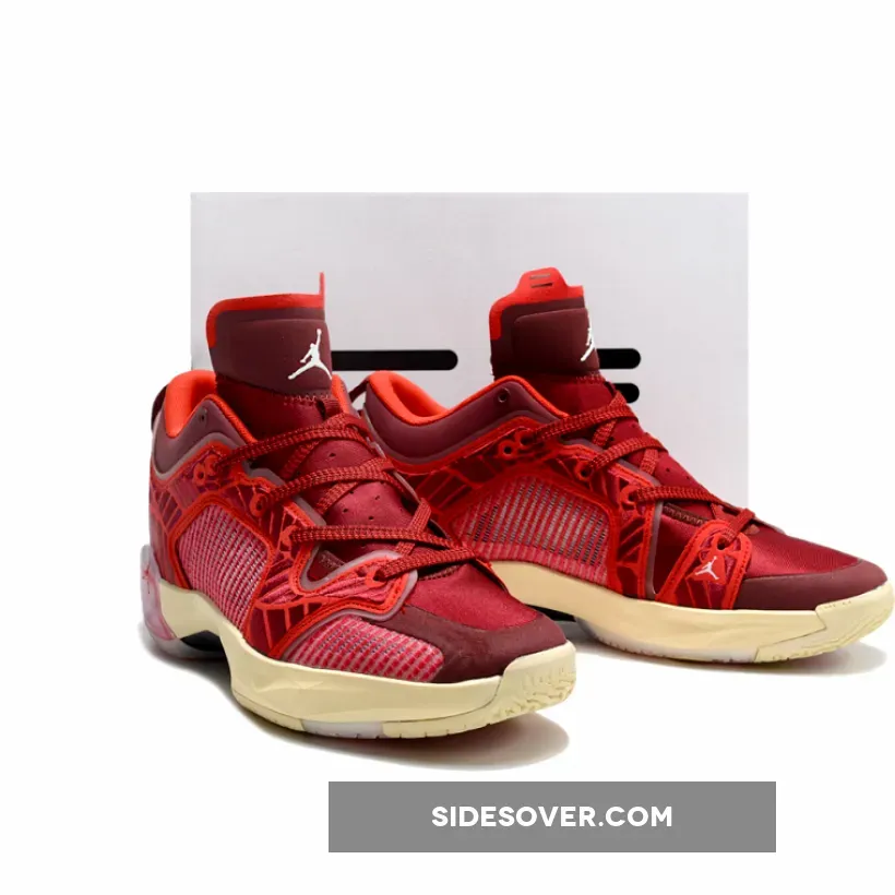 This Air Jordan 37 Low comes dressed in a Team Red, Sail, University Red, and Muslin color combination. Constructed with a mixture of mesh panels and embroidered patterns on the overlays, the shoe’s upper appears in mostly all-red hues. From the laces to the insoles and the Jumpman logo on the heel, red highlights these details. The shoe Other details include a carbon fiber plate in the mid-foot and Formula 23 foam in the heel.
