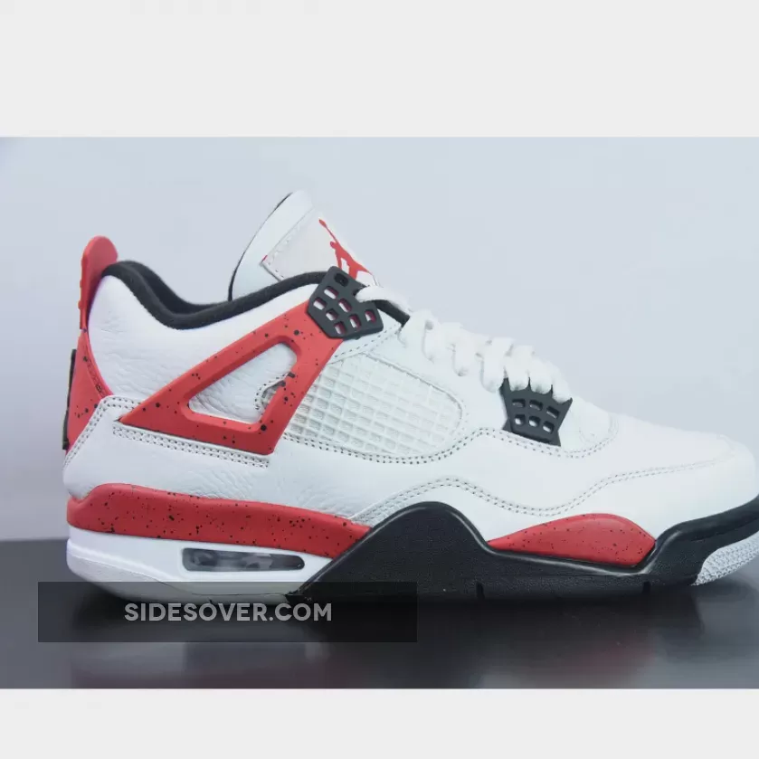 This offering of the Air Jordan 4 comes with a similar design as the “White Cement” release, but with Red replacing the Grey areas, giving the shoe a classic look. The red-speckled hits on the midsole, heel tab and wing flaps pay homage to the previously mentioned Cement Greys. Underneath, the addition of the grey toe makes it easy to see what ‘star count’ you’re on. Black Jumpman branding is sewn onto the tongue patch as well as embossed onto the heel of the shoe, taking the place of the original Nike Air logo. White laces further the classic look of the shoe and are woven through the traditional Air Jordan 4 eyestays. The shoe keeps it to the point and makes for a strong pair for the collection.