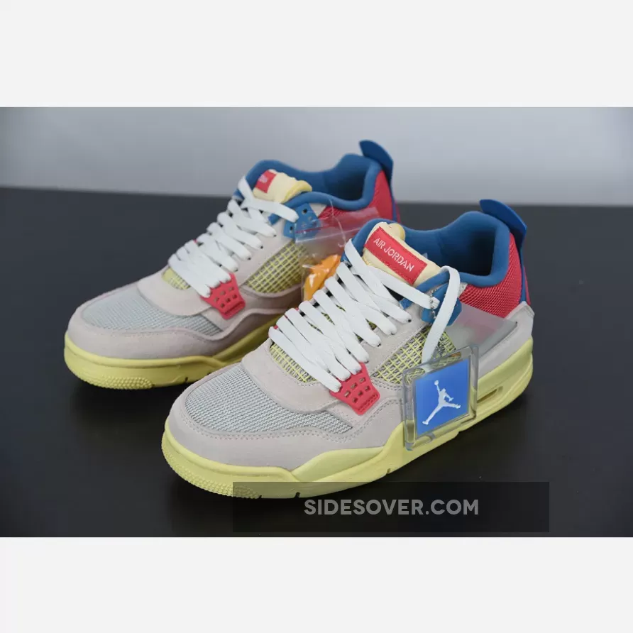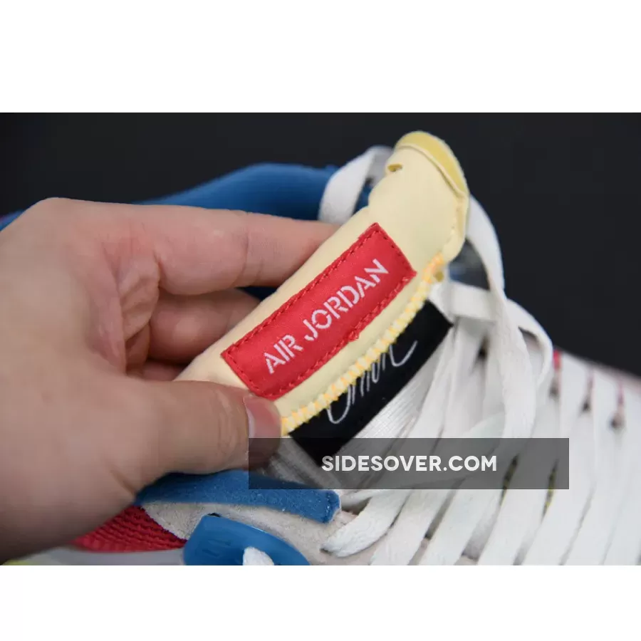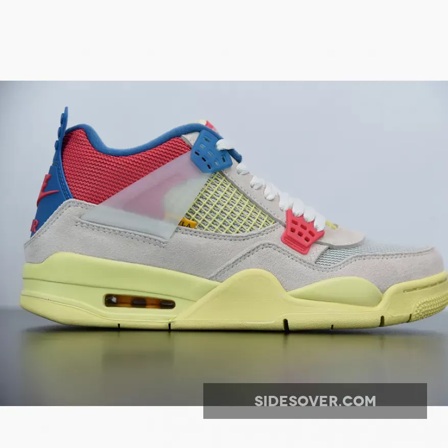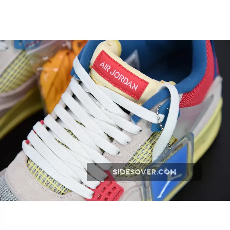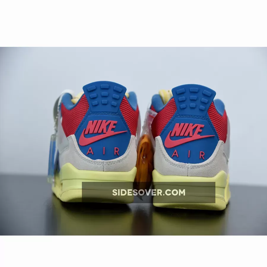 The Air Jordan 4 was famously designed by Tinker Hatfield and is one of the best Nike Air Jordan silhouettes of all time. The collab follows a sail, blue and red colorway, with the translucent wings keeping the laces firmly in place.
