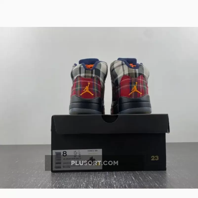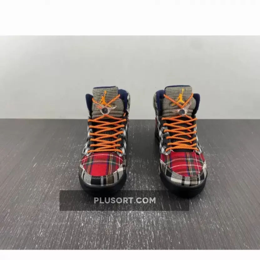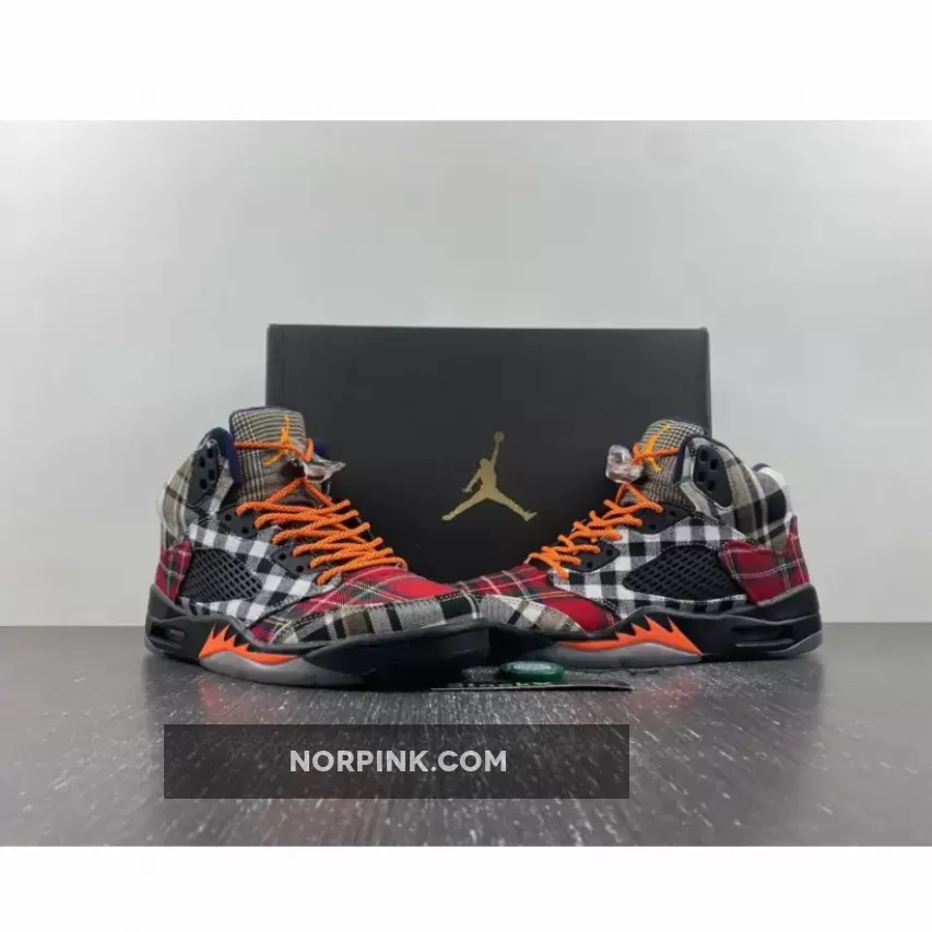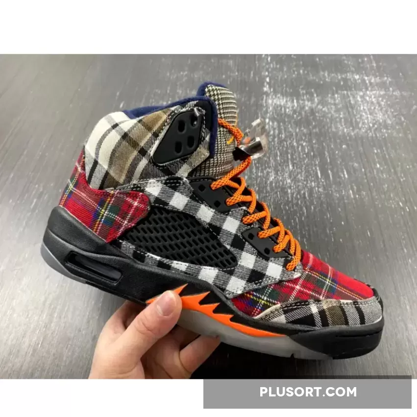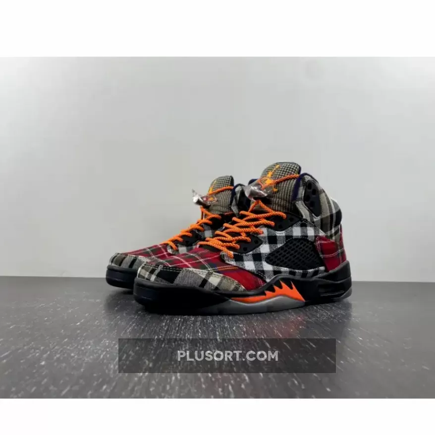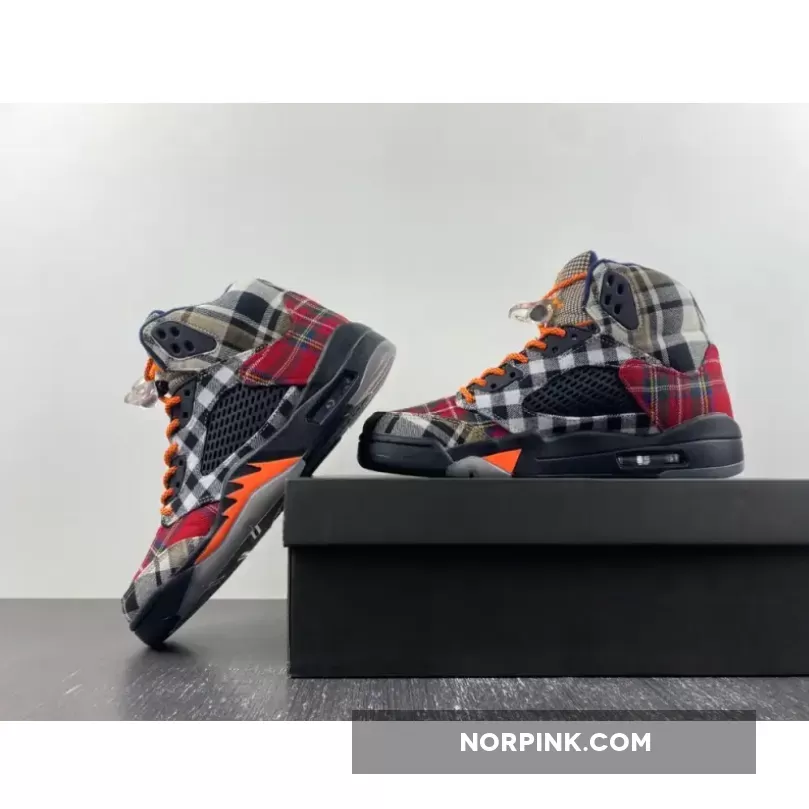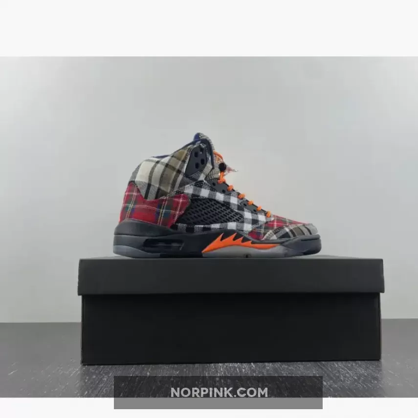 “I’m thoroughly impressed with my new Air Jordan 5 GS Plaid! 👟 The unique plaid pattern is so cool and adds a fun touch to my shoe game. 👕 Comfortable fit, great arch support, and the orange accents really pop. 🔄 Overall, I’m loving this bold design – would totally recommend! 😊”