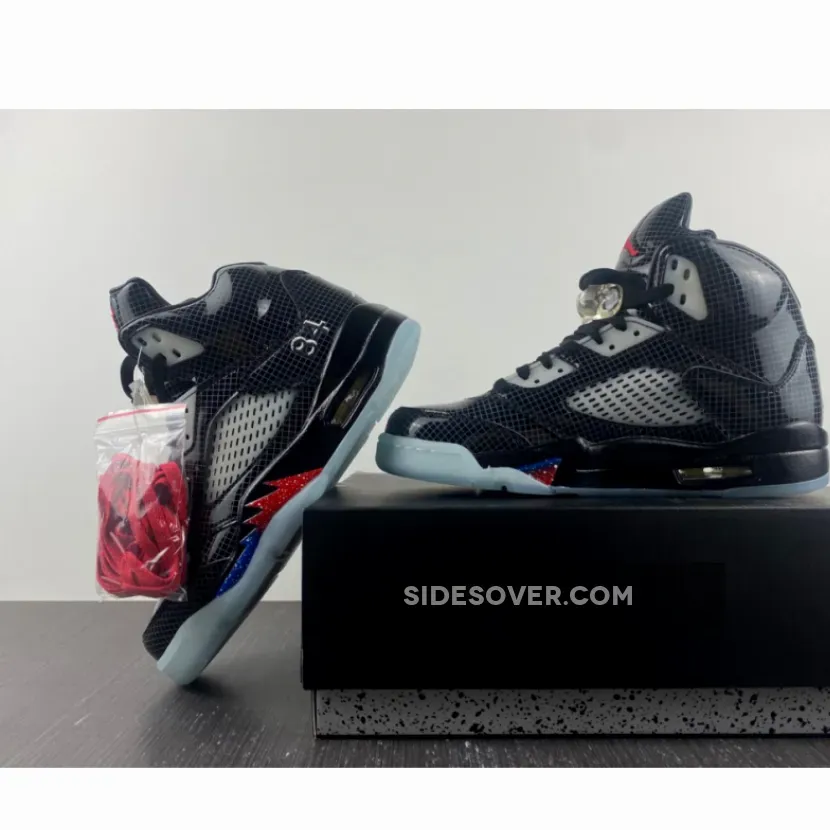 The build of this Air Jordan 5 if very similar to the Doernbecher release that includes the year ’84 embroidered on the sides as a nod to when the first episode of Transformers premiered.