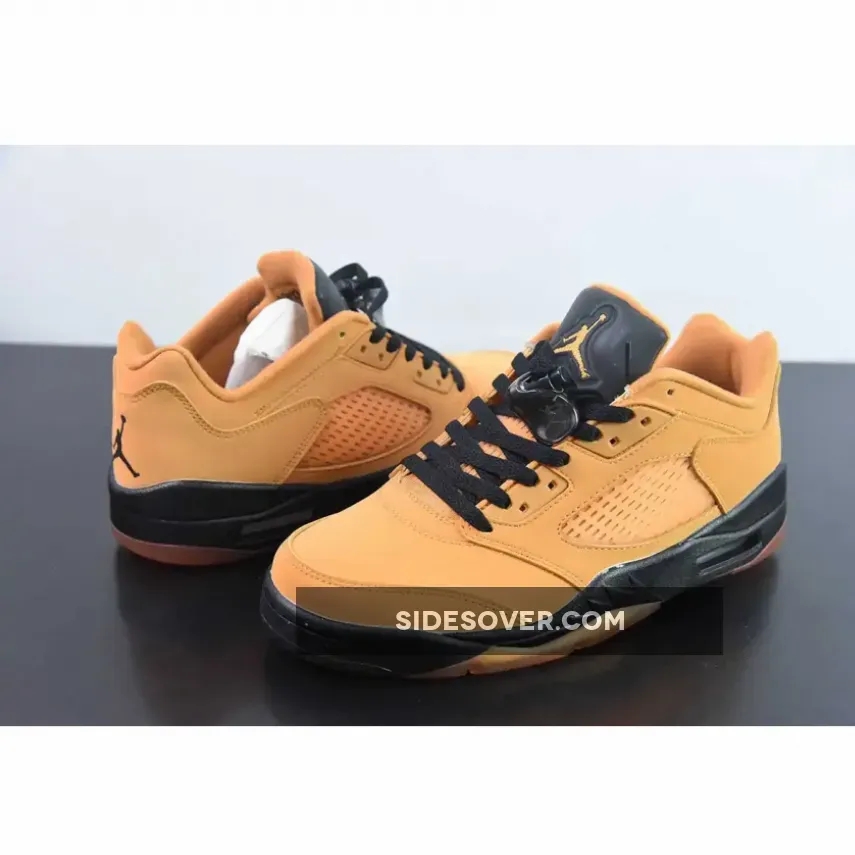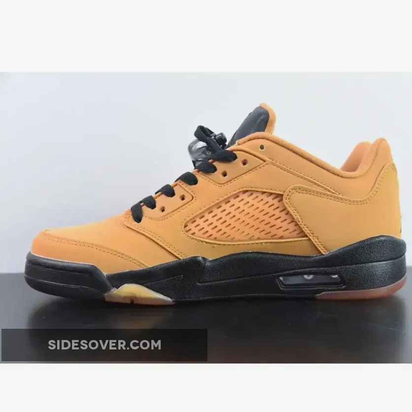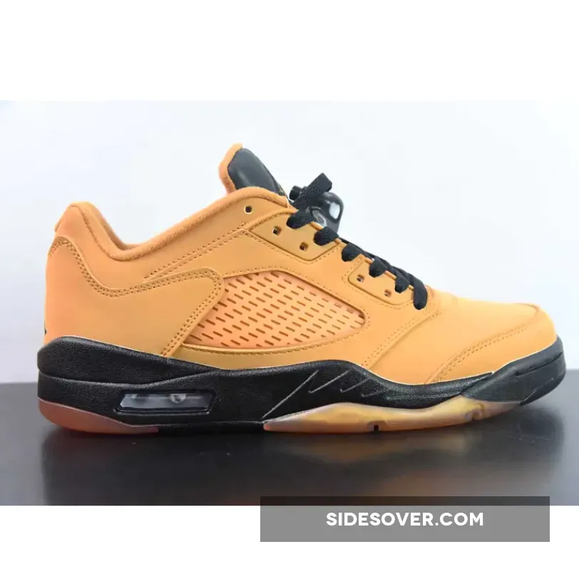 This low-cut AJ5 has a smooth leather upper in the titular dark yellow Chutney from heel to toe. Even the mid-panel translucent TPU mesh netting also follows the same hue. Bright red joins the mix of colours on the lace-lock accent and the embroidered Jumpman on the tongue. The leather tongues are in contrasting black. Utilizing Chutney on the base and liner while Black adorns the tongue, laces, and midsole. Finishing the look is a translucent outsole.