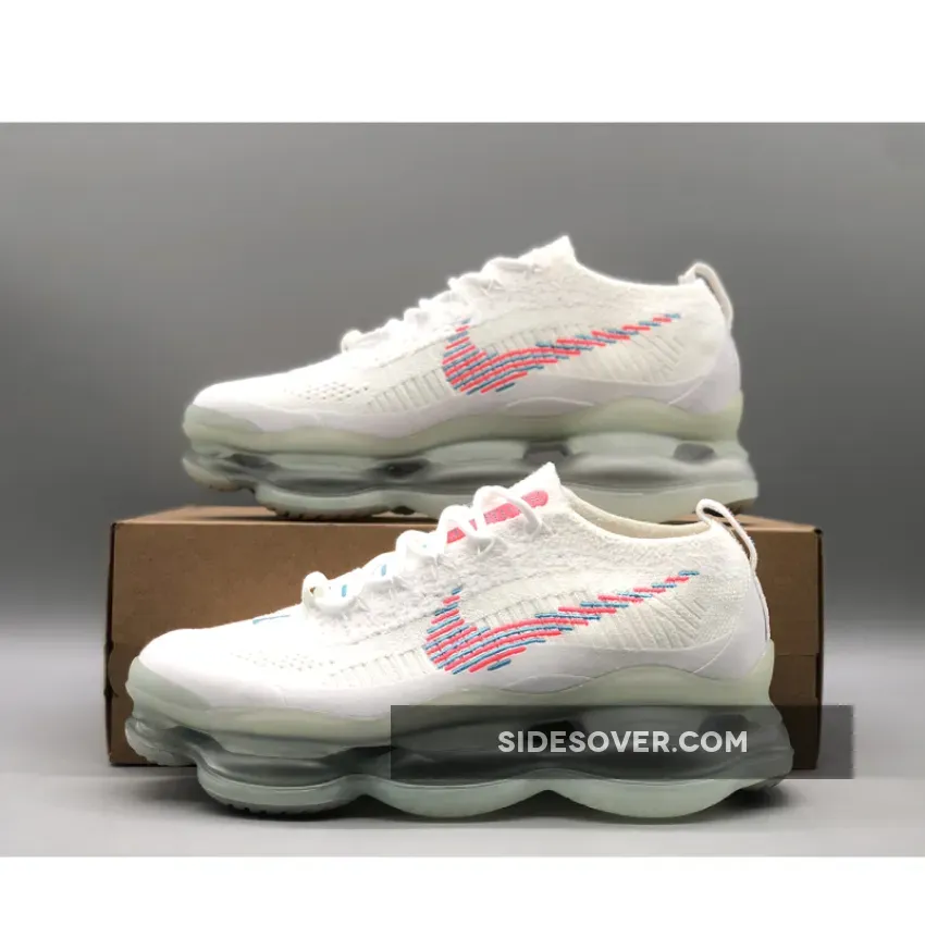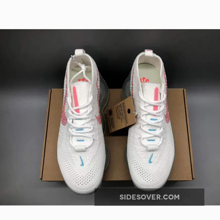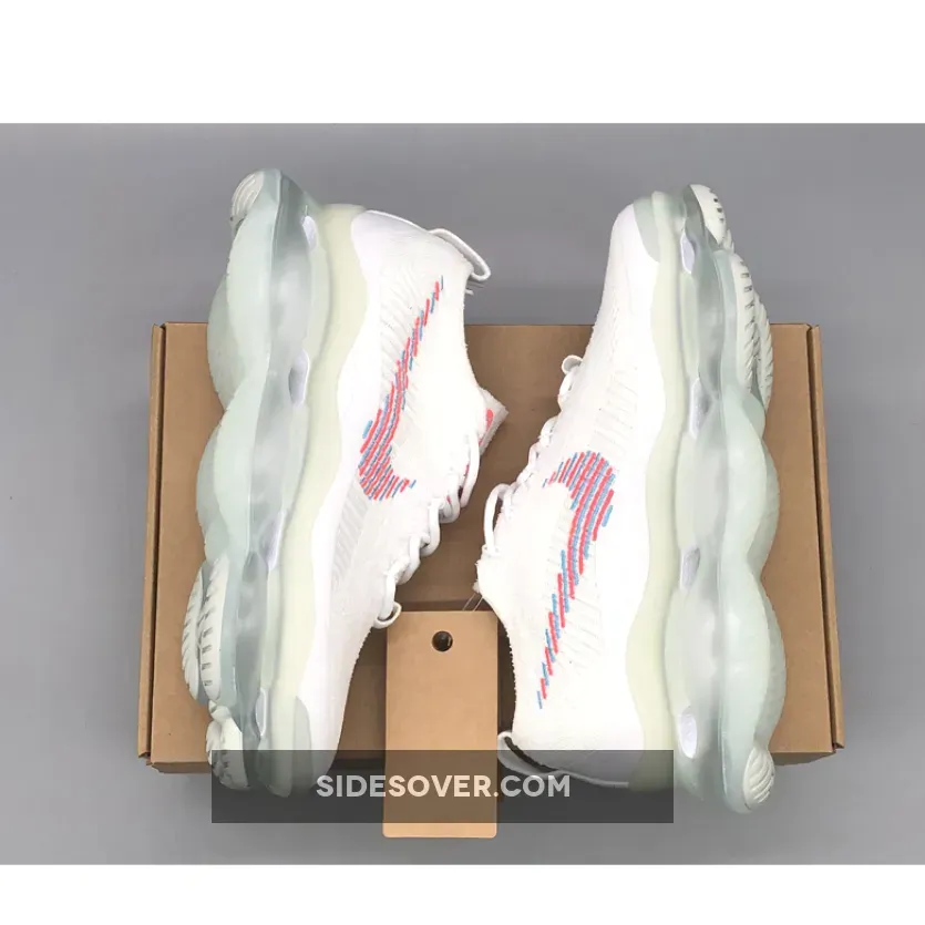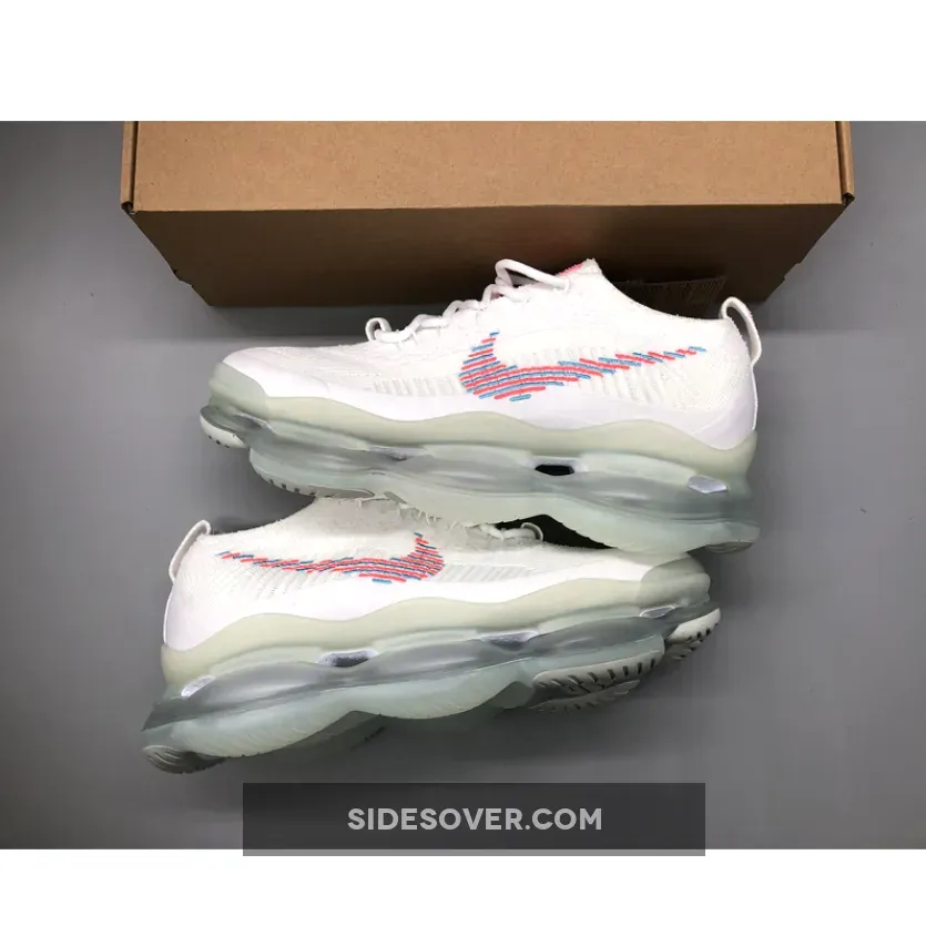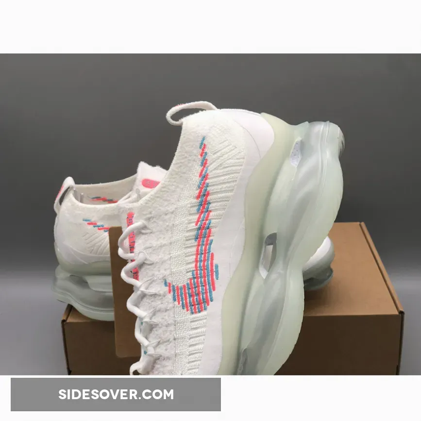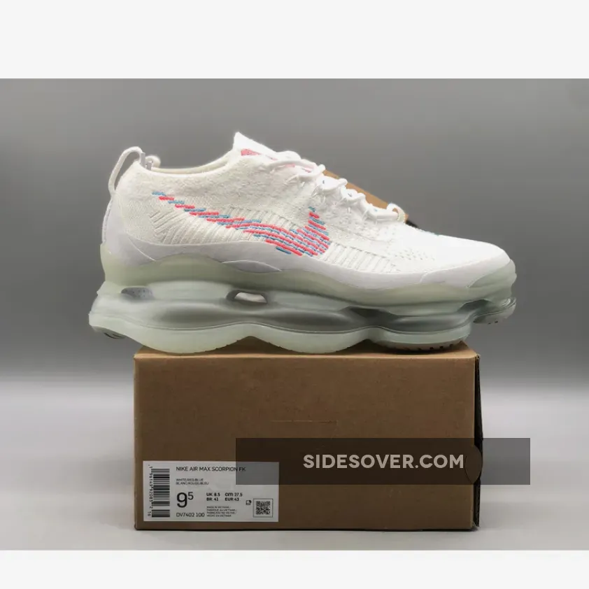 This Nike Air Max Scorpion comes dressed in a White, Lagoon Pulse, and Hot Punch color combination. A singular tone stretches atop the Flyknit and chenille construction of the upper with crisp white hues further enveloping the laces, pull tabs and color-matched full-length TPU mudguard.