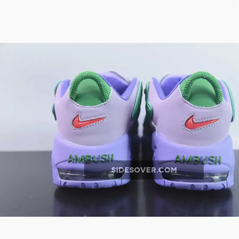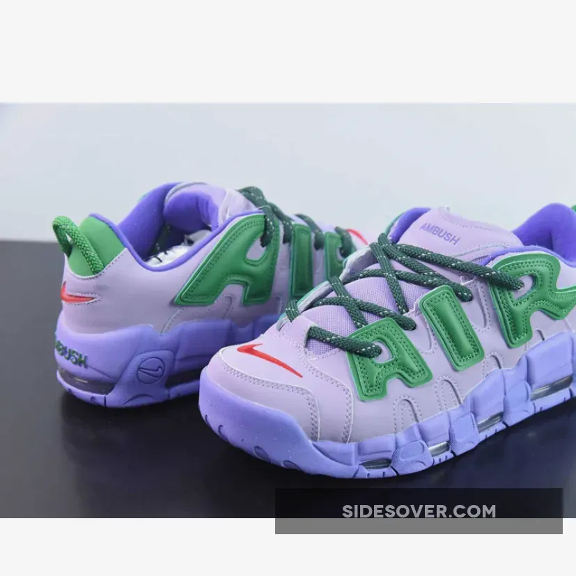 Loving the vibrant “Air” lettering on these ?! The lilac & green combo is a stunning design, while the full-length Air sole offers insane cushioning. Perfect for everyday wear ?! #AmbushNike #AirMoreUptempo #Sneakers #PurpleVibes ✨