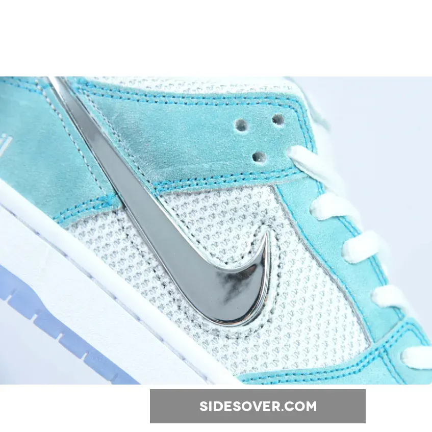 the April Skateboards x Nike SB Dunk Low features a White, Metallic Silver, and Turbo Green color combo as the sneaker starts off with white mesh detailing on the side panels and heels along with tonal leather toes. To break up the all white upper we see the addition of Turbo Green suede overlays. Design highlights then includes Metallic Silver Swooshes, signature padded tongues while April branding is featured on the lateral ankle and heels.