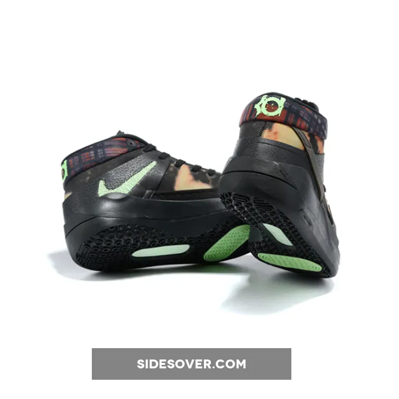this Nike kD 13 comes with Black across the base while bleached areas are seen throughout. Following we have plaid material on the tongue and collar. In addition Anthracite lands on the lateral Swoosh, Neon Green hits the tongue, medial Swoosh and the heel branding which appears to be spray painted. Black lands on the midsole and rubber outsole which completes the look.
