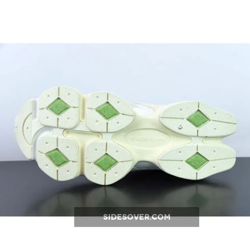This offering of the Bricks & Wood x New Balance 9060 features a Grey breathable mesh upper with Cream suede overlays argon with a set of fuzzy laces. Suede overlays, tongues, and N logos are engulfed in a bright cream color, while the exposed mesh underlays are offset with gray. More personality up top is shown off through subtle texture and graphic remixes. The laces have been modified with fuzzy textures while the insoles are coated with green camouflage patterns and Bricks & Wood branding. Curvy midsoles also deliver more flair as they have been styled in cream and accessorized with vivid green pods which is amplified by the aforementioned hits of green that animates cushioning zones.