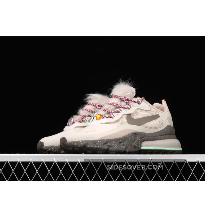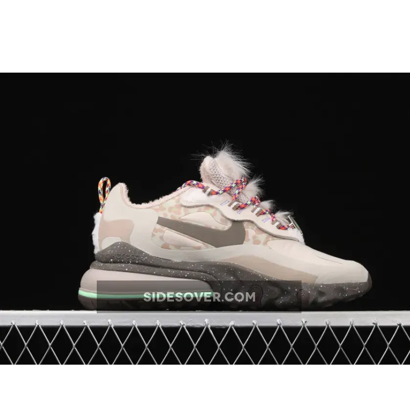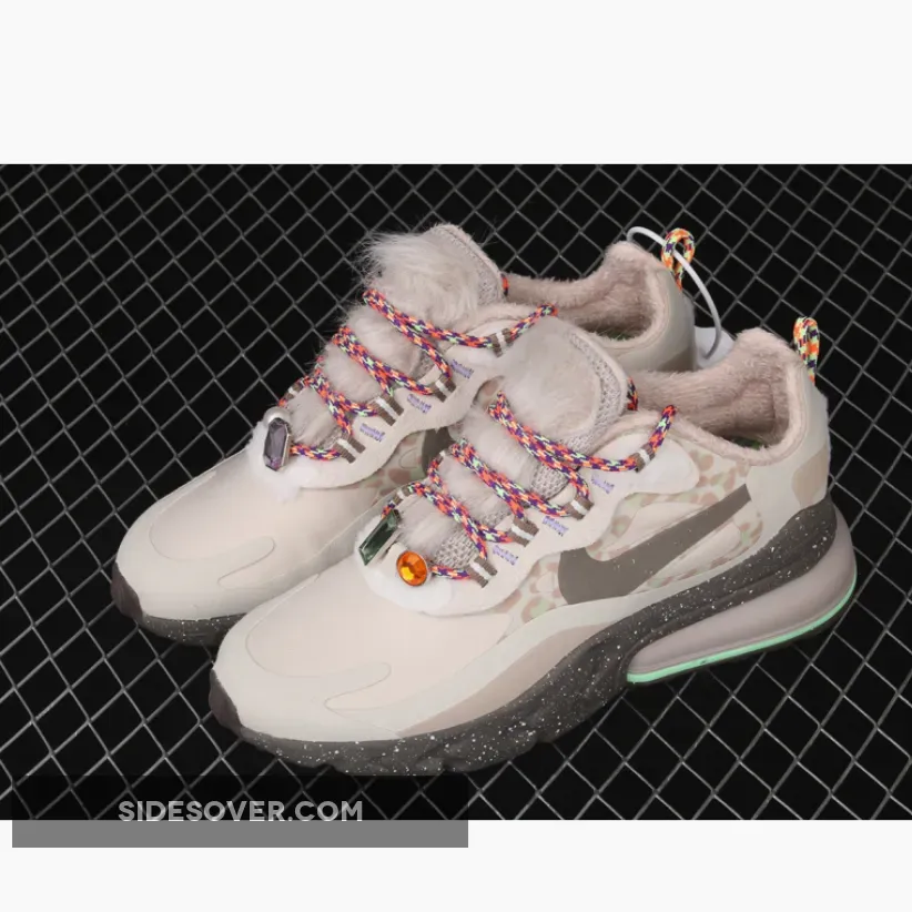 The Air Max 270 React Light Tan Baroque Brown offers a stylish & playful take on the classic Air Max silhouette. The furry instep & colorful rope laces elevate the design, while the mix of tan & animal print adds versatility. Performance-wise, the React cushioning feels plush & responsive, making these perfect for casual strolls or light runs. Overall, a unique & eye-catching sneaker for lovers of bold fashion & comfort.
