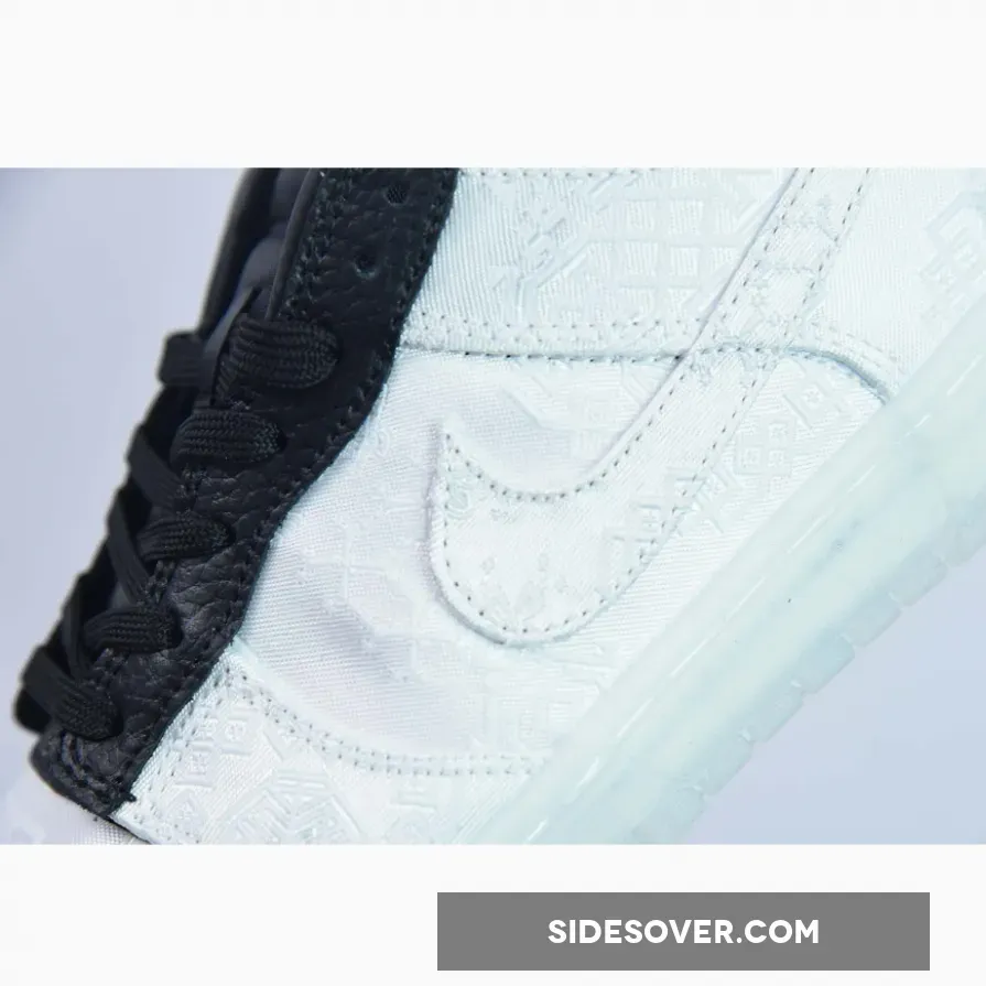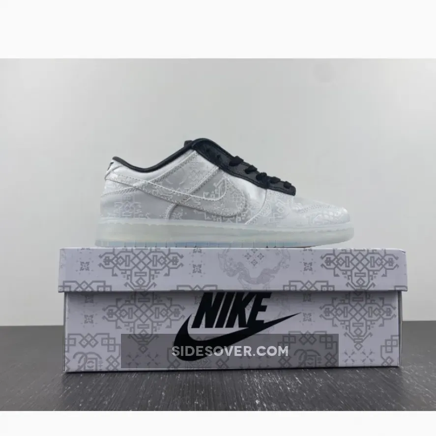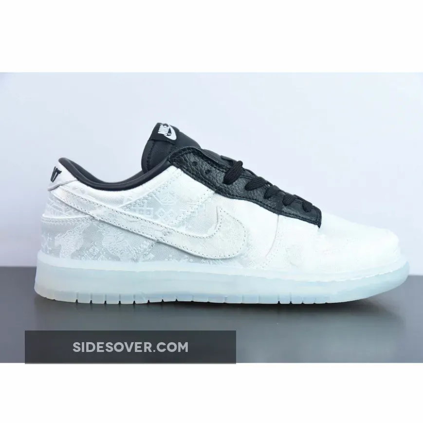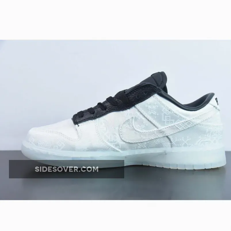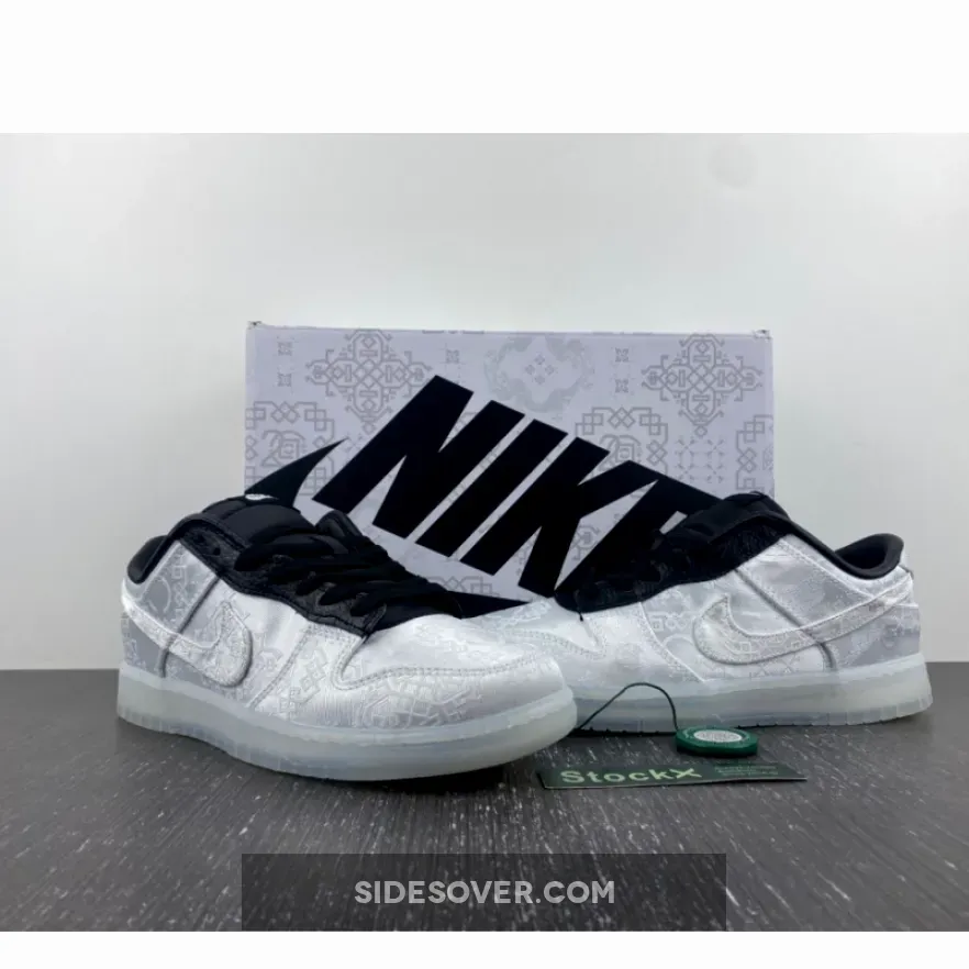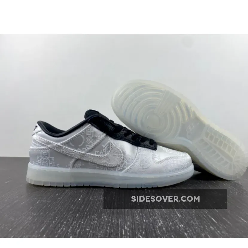 the Clot x Fragment x Nike Dunk Low features a tearaway silk upper in White with Black leather eyestays and lining atop a translucent outsole. “FRGMT” branding is embroidered on the heels, while co-branded Clot and Fragment logos are stamped onto the insoles. The shoe will also come housed in special packaging.