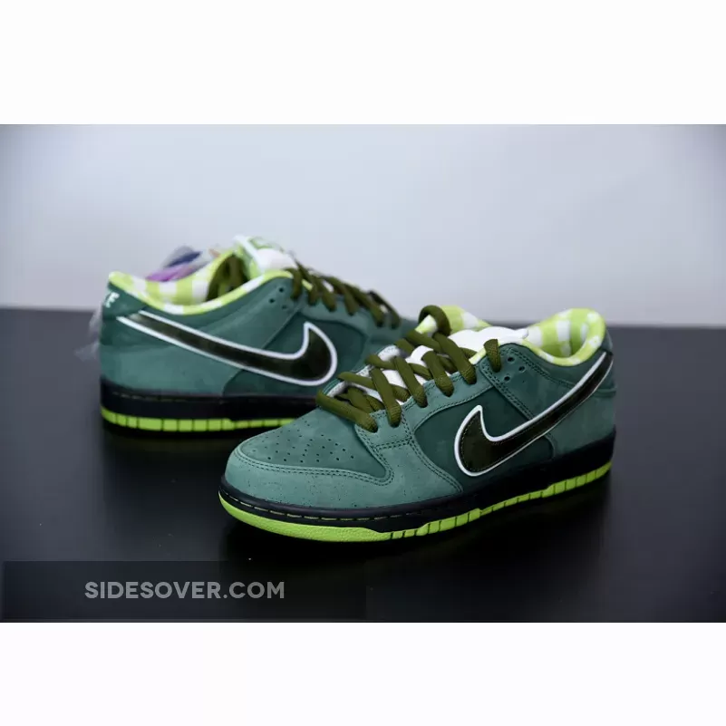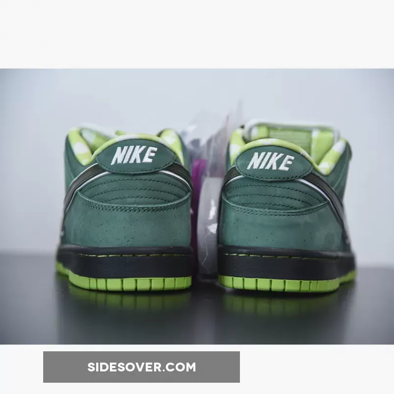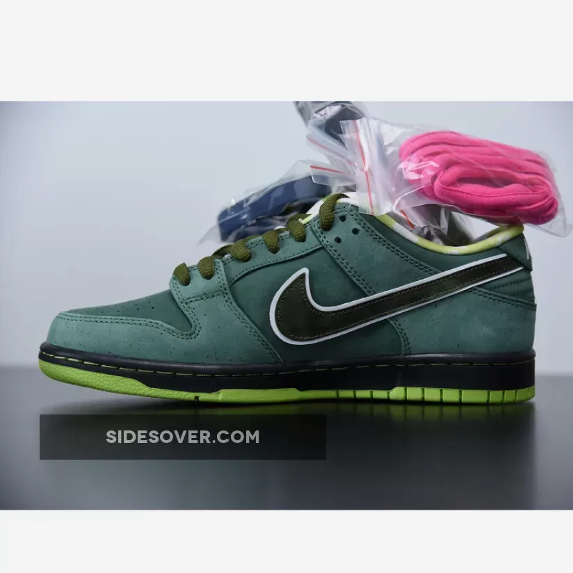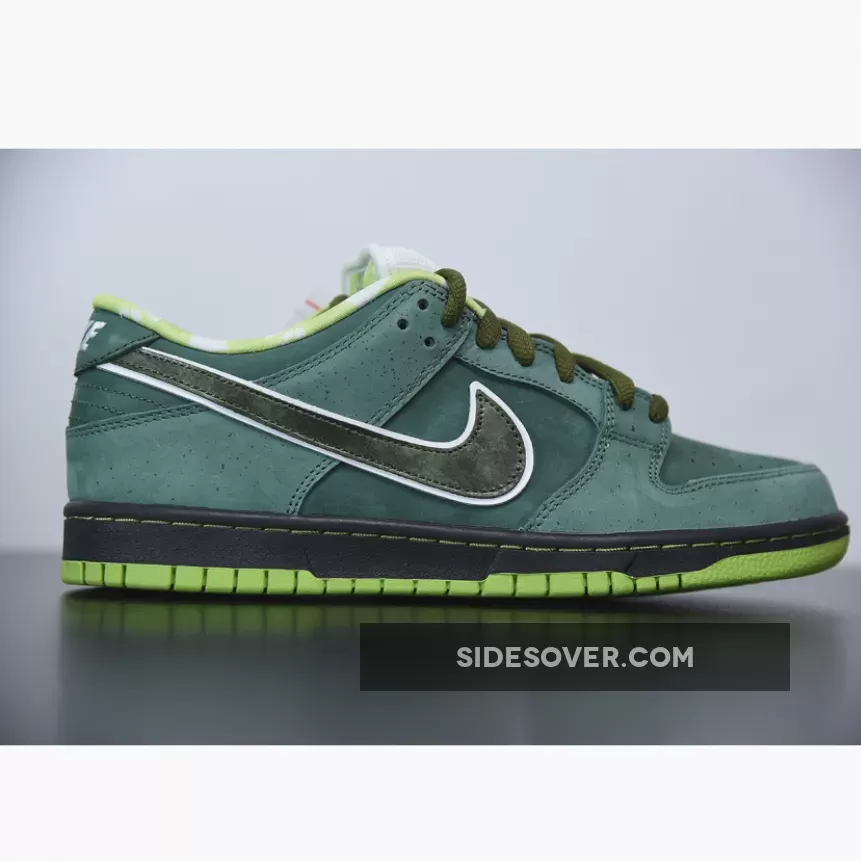 Casting another big shadow of Concept and color, the Nike Dunk Low Pro SB Green Lobster followed up its vivid purple cousin with subtlety and exclusivity. The green stone upper opted for minimal speckling, allowing the shock of neon green on the sole and inner pattern to pop. A Black midsole and Green rubber outsole completes the design.