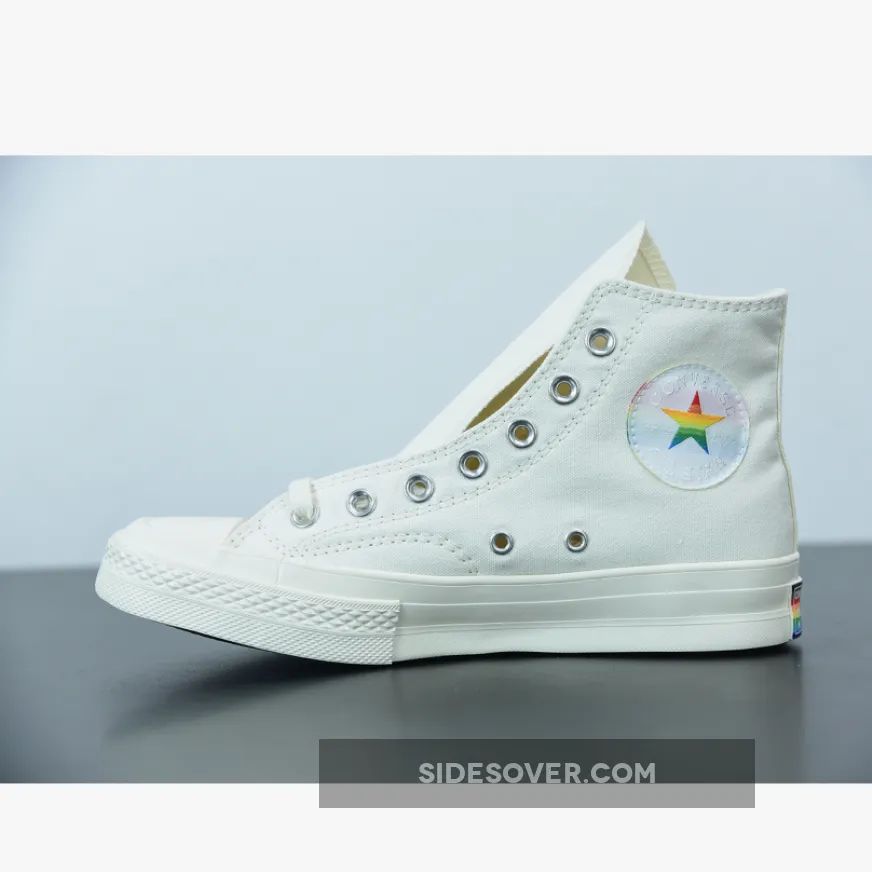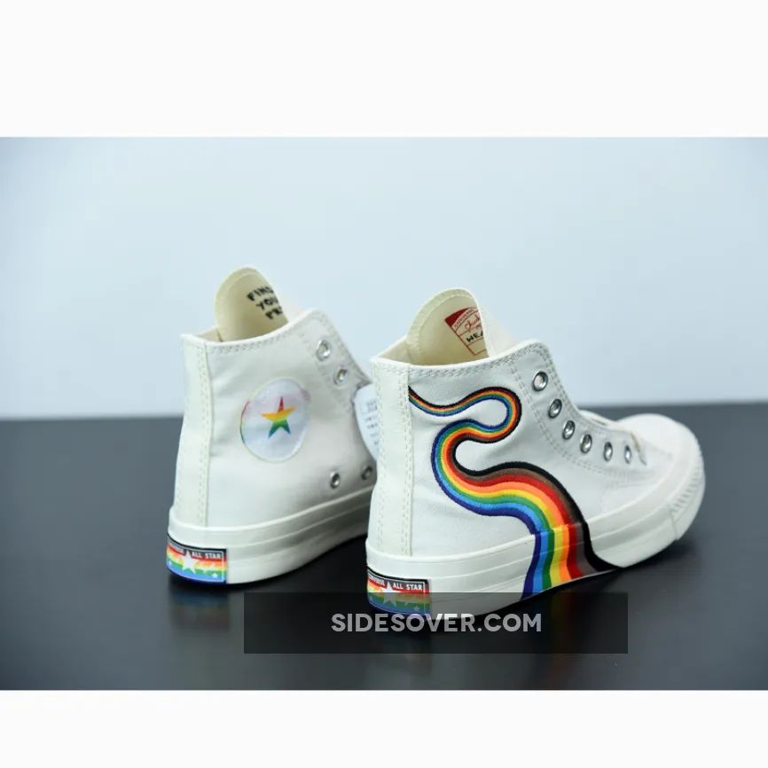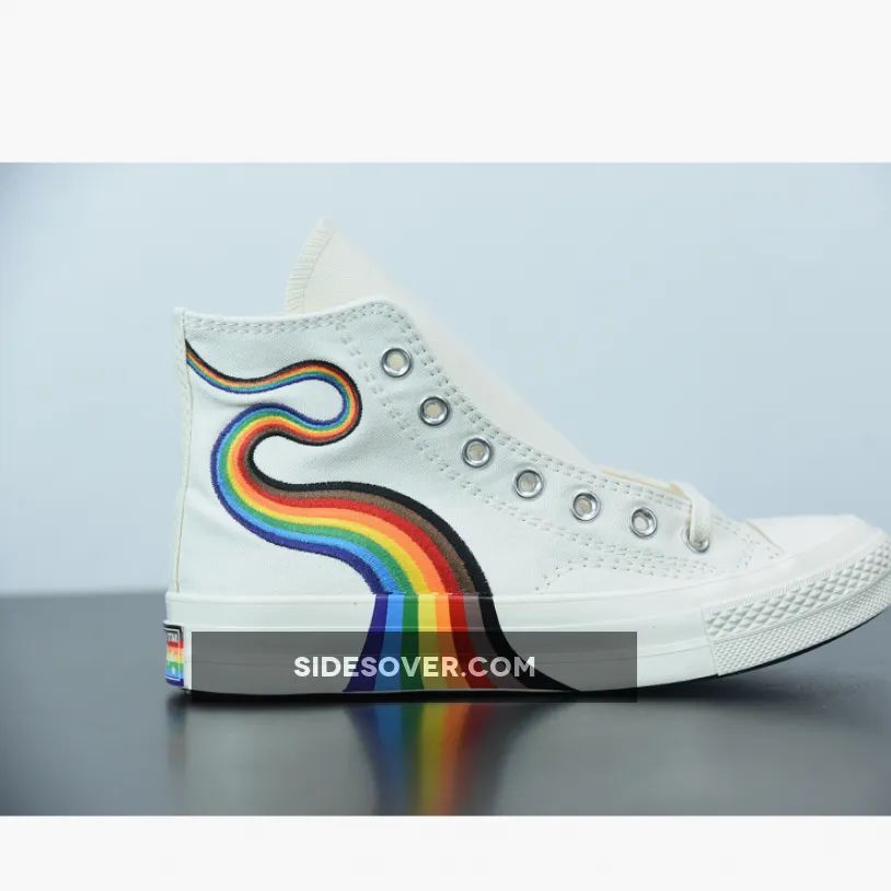 “I’m thoroughly impressed with my Converse Chuck 70 Pride Hi Egret sneakers! ? The vibrant rainbow hues and 3D ‘rainbow road’ embroidery add a pop of color to any outfit. The neutral base and multi-colored star on the ankle patch are great design choices. ? Overall, I’m loving the message behind this collab – it’s more than just a shoe, it’s a symbol of love and acceptance. ❤️ 5/5 stars!”