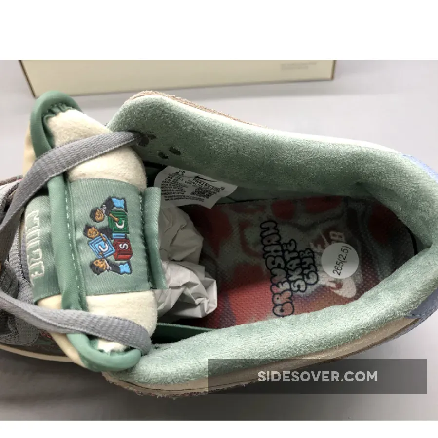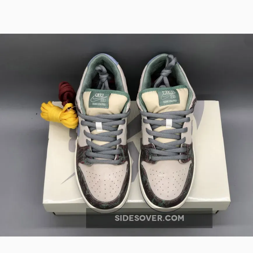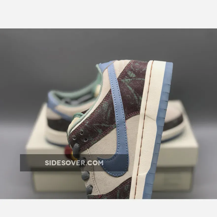 we can see the upcoming Crenshaw Skate Club x Nike SB Dunk Low boasts a clean design made from smooth suede and leather overlays featuring Purple/Seafoam print.