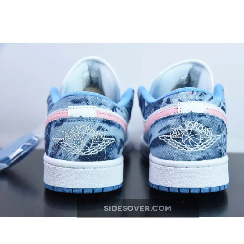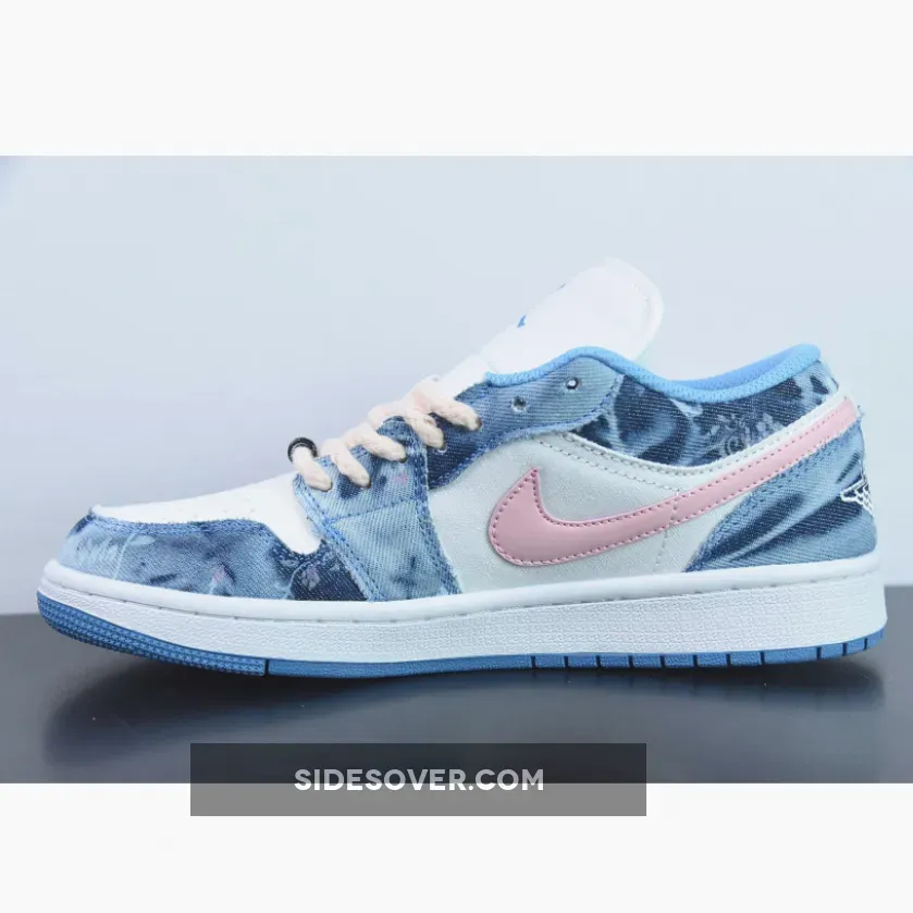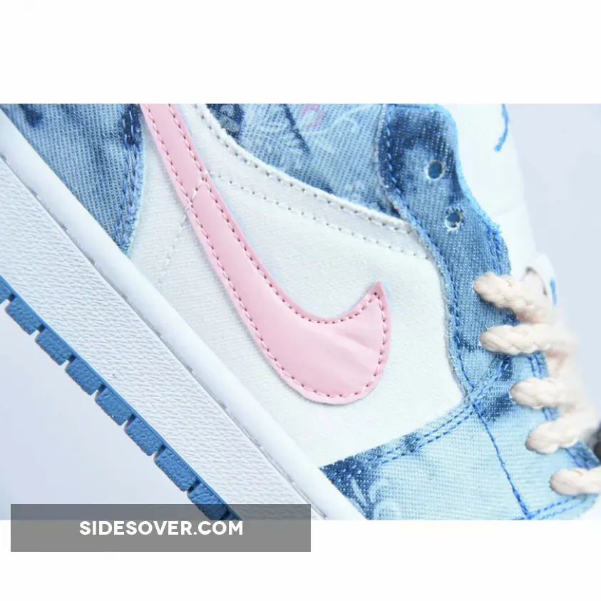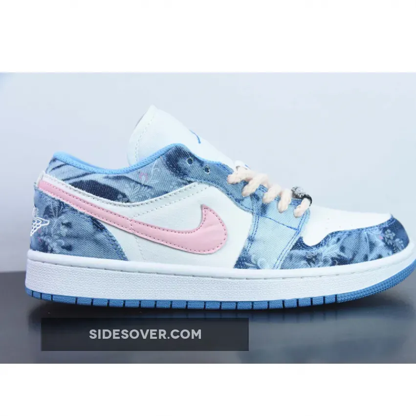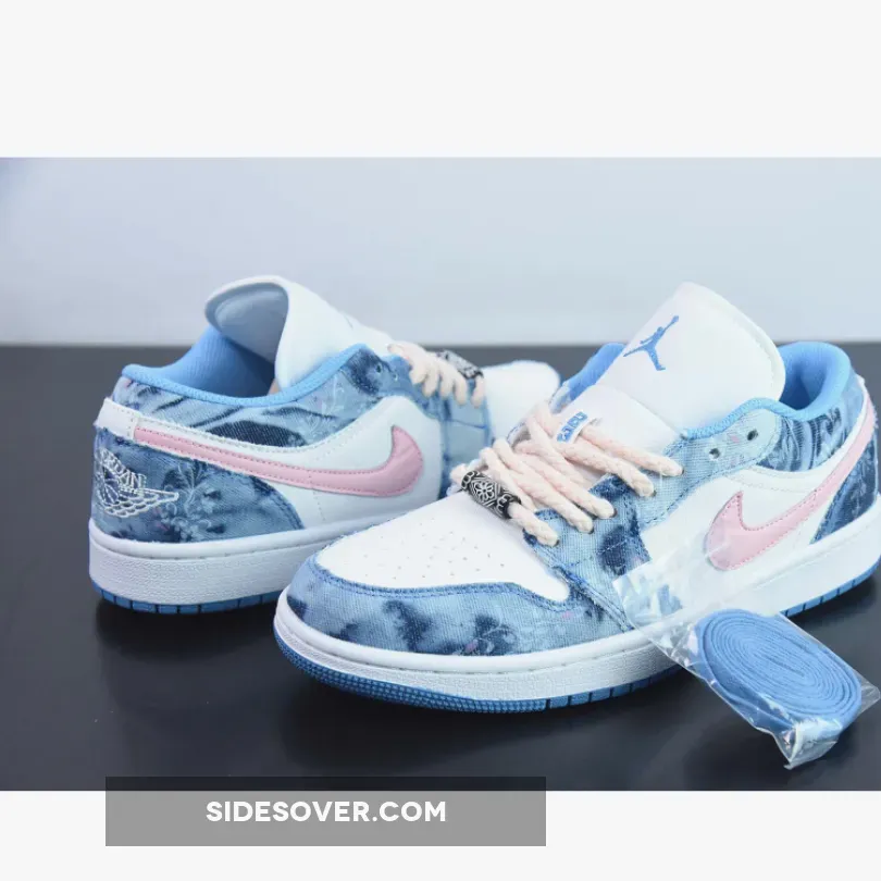 Custom Air Jordan 1 Low Washed Denim/White-Pink – step up your fashion game with SIDESOVER.COM.