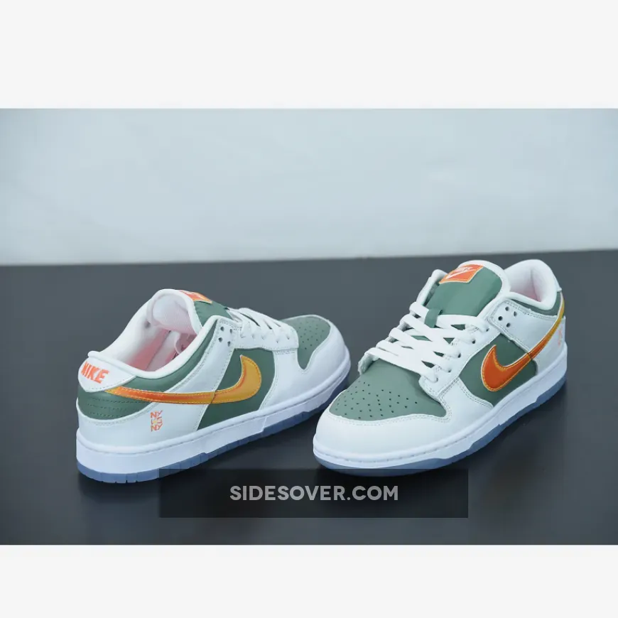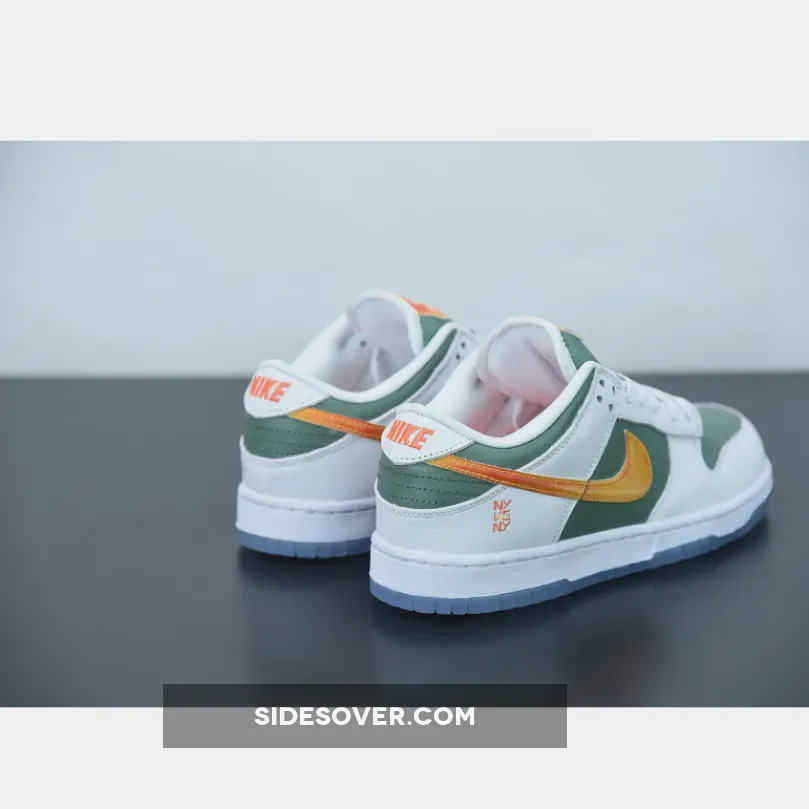 Tapping into the shoe’s basketball roots, the Nike Dunk Low ‘NY vs NY’ celebrates the summertime streetball tournament showcasing some of New York City’s best high school hoopers. The leather upper pairs a dark green base with contrasting white overlays at the forefoot and heel. A gradient blend of red and orange is applied to the signature Swoosh and Nike-branded tongue tag.