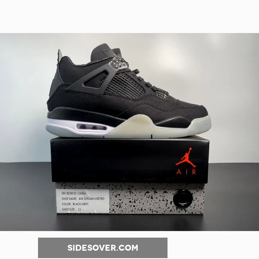 This Air Jordan 4 is dressed in a Black, Chrome, and White color scheme. Carhartt’s rugged canvas on the upper has these looking tough-as-nails. Restrained hits of silver adorn the Jumpman and lace loops.