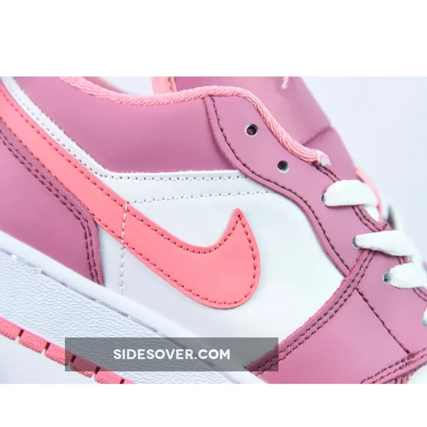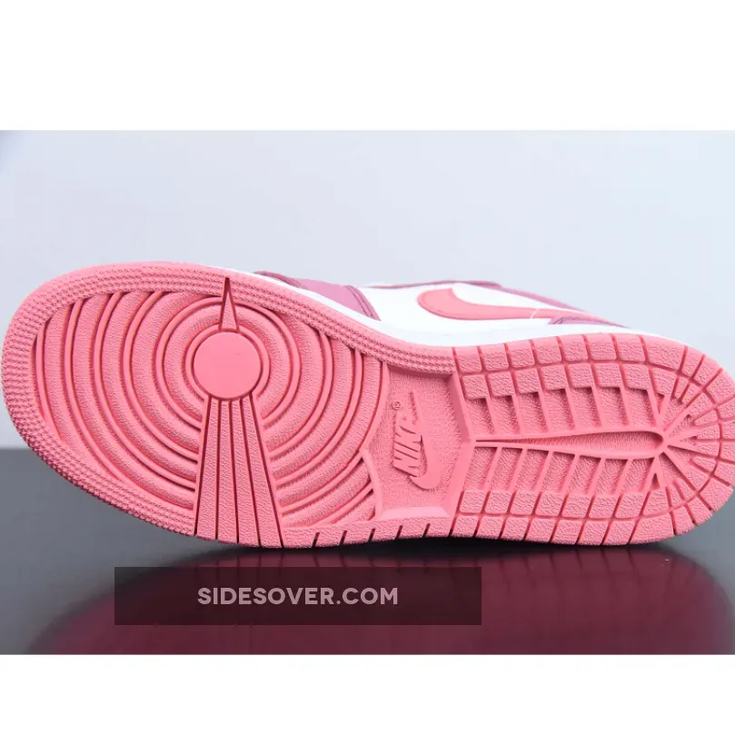 The upper part of the Desert Berry Jordan 1 Low (GS) is made of high-quality leather material. The shoe has a low-cut design which allows for easy movement. The padded collar and tongue add extra comfort to the sneaker. The sole of the sneaker is made of rubber material with a patterned outsole that provides traction and grip on any surface. The midsole is made from foam and provides support and cushioning for the wearer.
