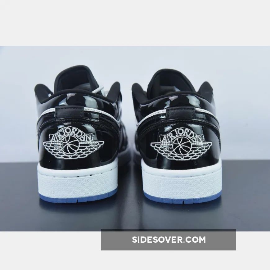 Sleek but eye-catching, the Air Jordan 1 Low Concord White Black features a simple monochromatic design that’s truly versatile. The sneaker uses the Concord’s signature color blocking with a crisp White leather base and shiny patent “Dark Concord” overlays. The insoles feature Purple branding, while the Air Jordan Wings are in White and the Jumpman is in Black. Classic Air Jordan 1 Low details such as the padded tongue, lightweight midsole with comfy cushioning and durable icy outsole complete this release. The sneaker is finished with a White midsole and icy Blue outsole.