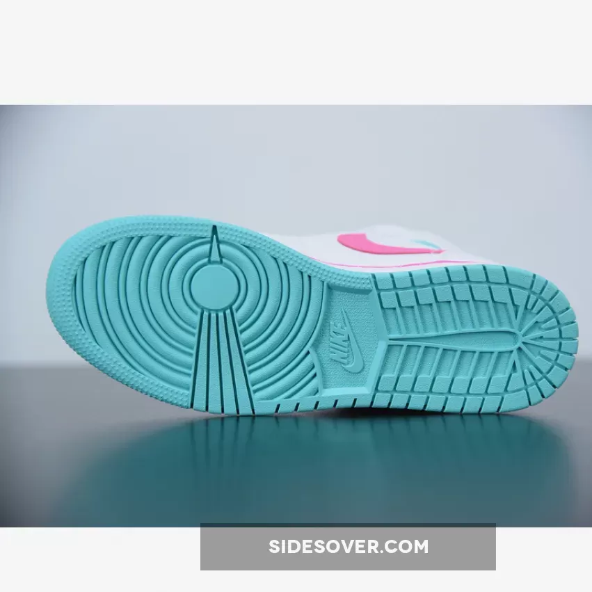 Step into the new season looking and feeling fabulous in this white, pink and blue Air Jordan 1. The clean white leather upper is contrasted with vibrant pops of colour including bright teal across the toe box and heel of the collar with accents of candyfloss pink around the trim on the midsole.