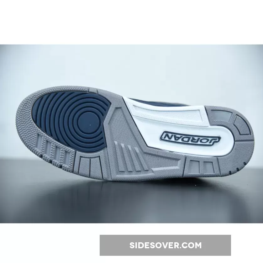 “I’m stoked with my new Air Jordan 3 Midnight Navy/Cement Grey-White 🏀! The navy tumbled leather upper is sick 🔥 and the cement grey overlays add a dope touch 💪. The white midsole gives it a fresh look 💨, and the grey rubber sole provides a solid grip 👣. Overall, this sneaker’s design is on point 💯!”