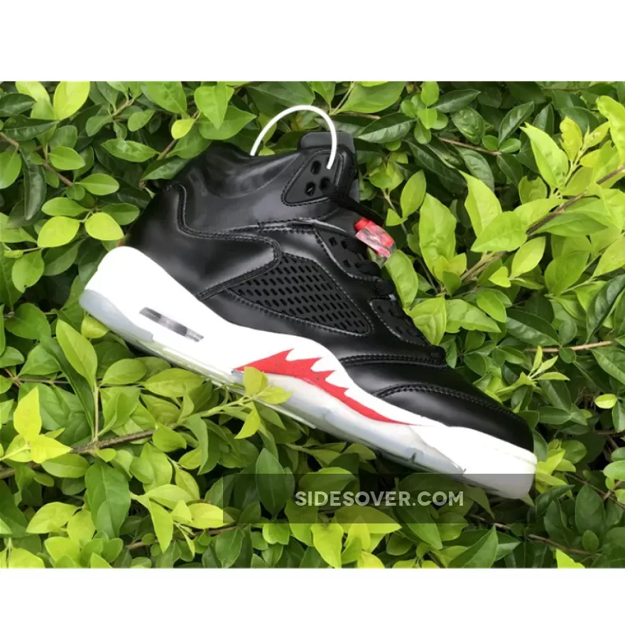 One of the newer pairs scheduled to launch comes dressed in a Black, Muslin, and Fire Red color scheme resembling the “Couture” Air Jordan 1 that released back in February 2019. No leaked photos have surfaced, but this Air Jordan 5 is expected to feature a Black upper paired with Fire Red accents atop a Cream-colored midsole and icy translucent outsole.