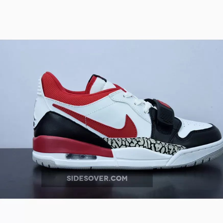 The four-year-old Jordan Legacy 312 has a striking new release with a wild side. Take a closer look at the Jordan Legacy 312 Low Black Toe. The low-cut Legacy 312 is made with a combination of leather, mesh and nylon. The shoe’s upper has a basic “colourless” white base that is matched by black overlays on the toe cap, the mudguard and the heel counter. The aforementioned wild side of the shoe comes in the form of the elephant print just above the midsole. The signature lower strap of the sneaker comes in black with vibrant red Nike branding that matches the Swoosh and heel accents. A white midsole housing an exposed Air unit at the heel and a light grey rubber outsole round out the design of this sneaker. Shop the Jordan Legacy 312 Low Black Toe on Our Store Supplier app and never miss any Nike and Jordan brand drop dates.