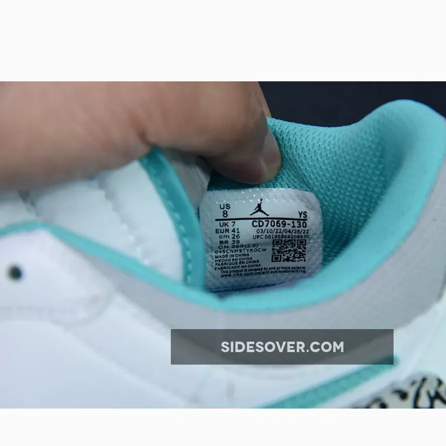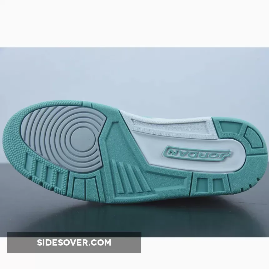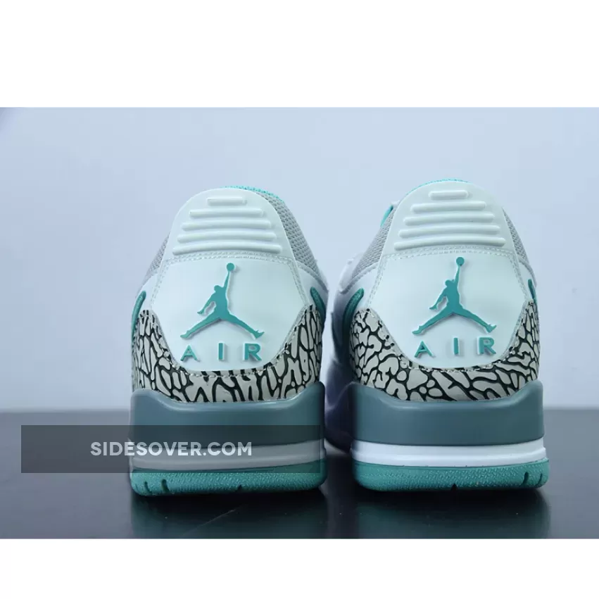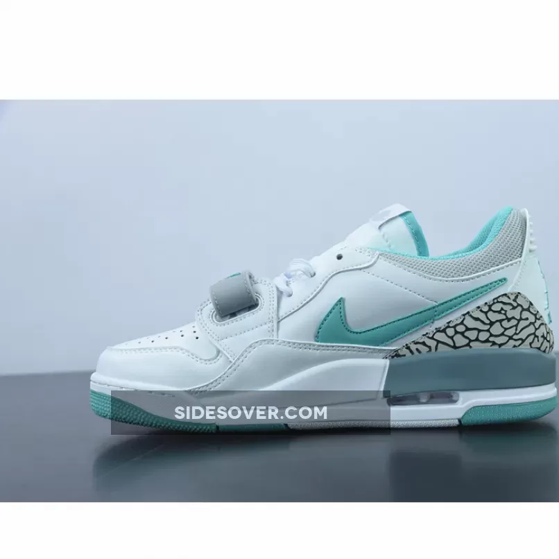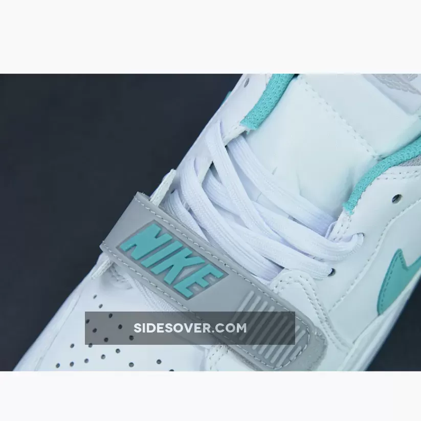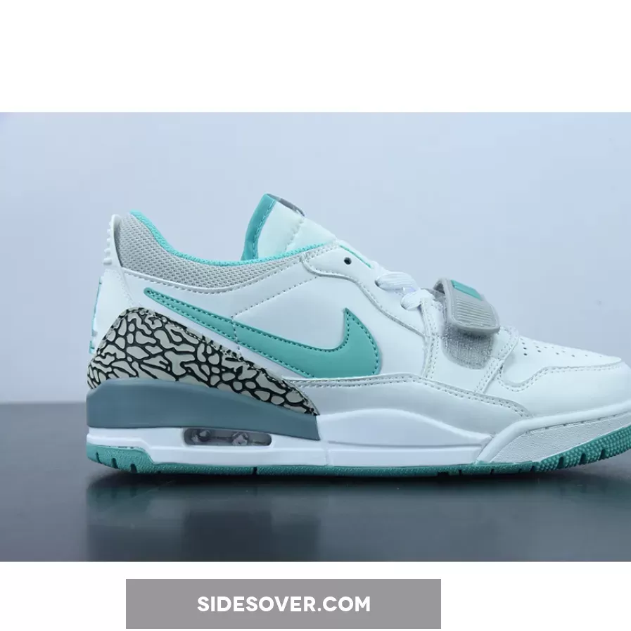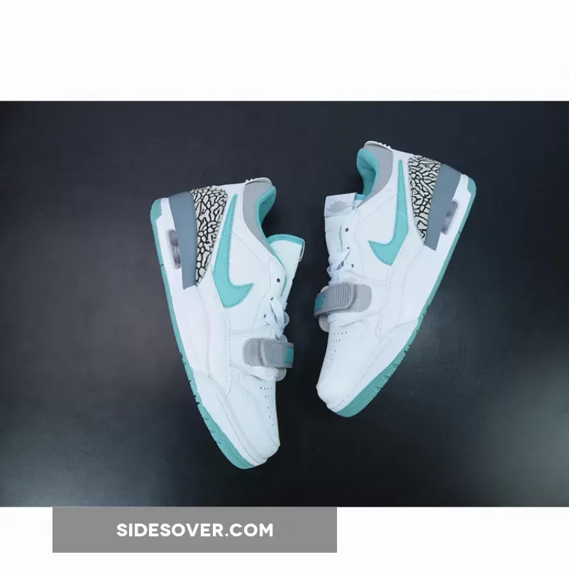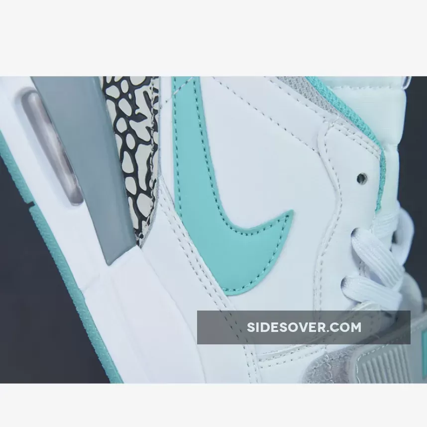 This offering of the low-top Jordan Legacy 312 comes constructed in a mix of leather and mesh with signature nylon tongues. It features a White base highlighted with Turquoise contrasting accents and classic elephant print overlays in the rear.