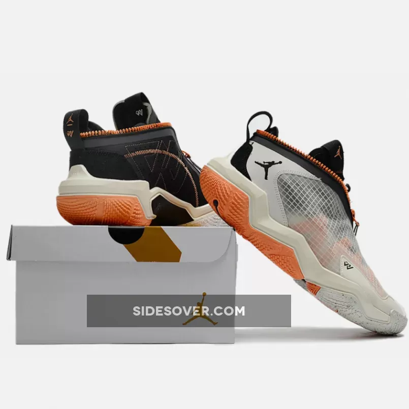 Crafted from suede and technical ripstop, The collar is decorated with a unique orange trance zipper design that spells out “Why Not,” and logos for Jumpman and Westbrook are finely stitched across the lateral sidewall. Soft orange accents add a pop of color to the otherwise monotone shoe, and the midsole underfoot offers unrivaled comfort with every step. All of this sits on top of an aggressively-sculpted midsole underfoot which offers unparalleled comfort and response with every step.